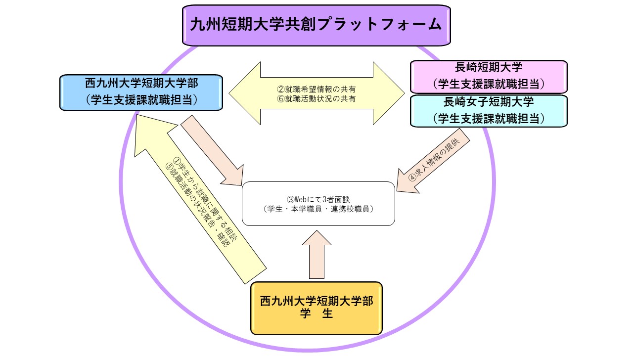 この九州短期大学共創プラットフォームは、西九州大学短期大学部、長崎短期大学(njc.ac.jp)、長崎女子短期大学(https://www.nec.ac.jp/)の3校で形成されております。