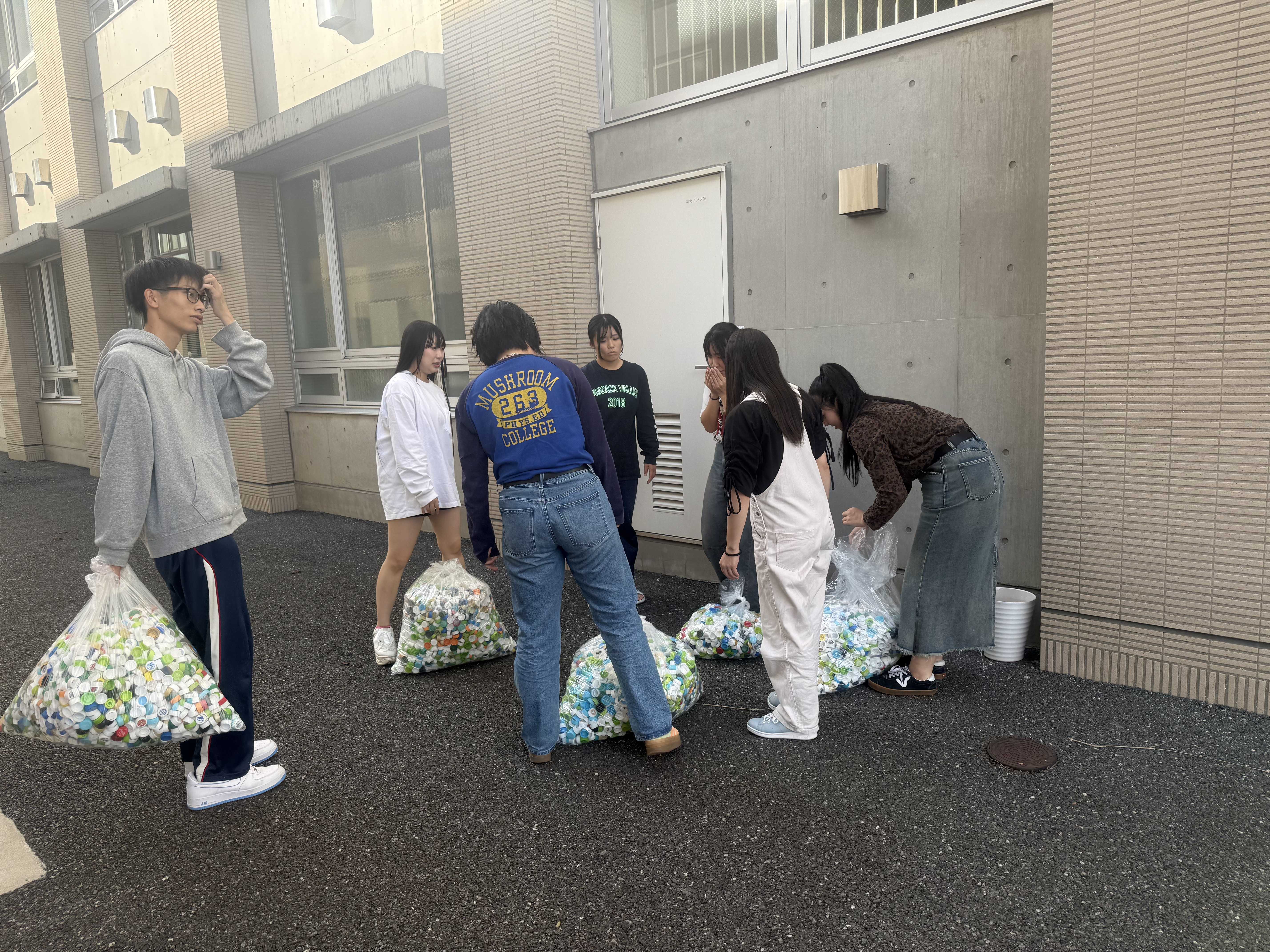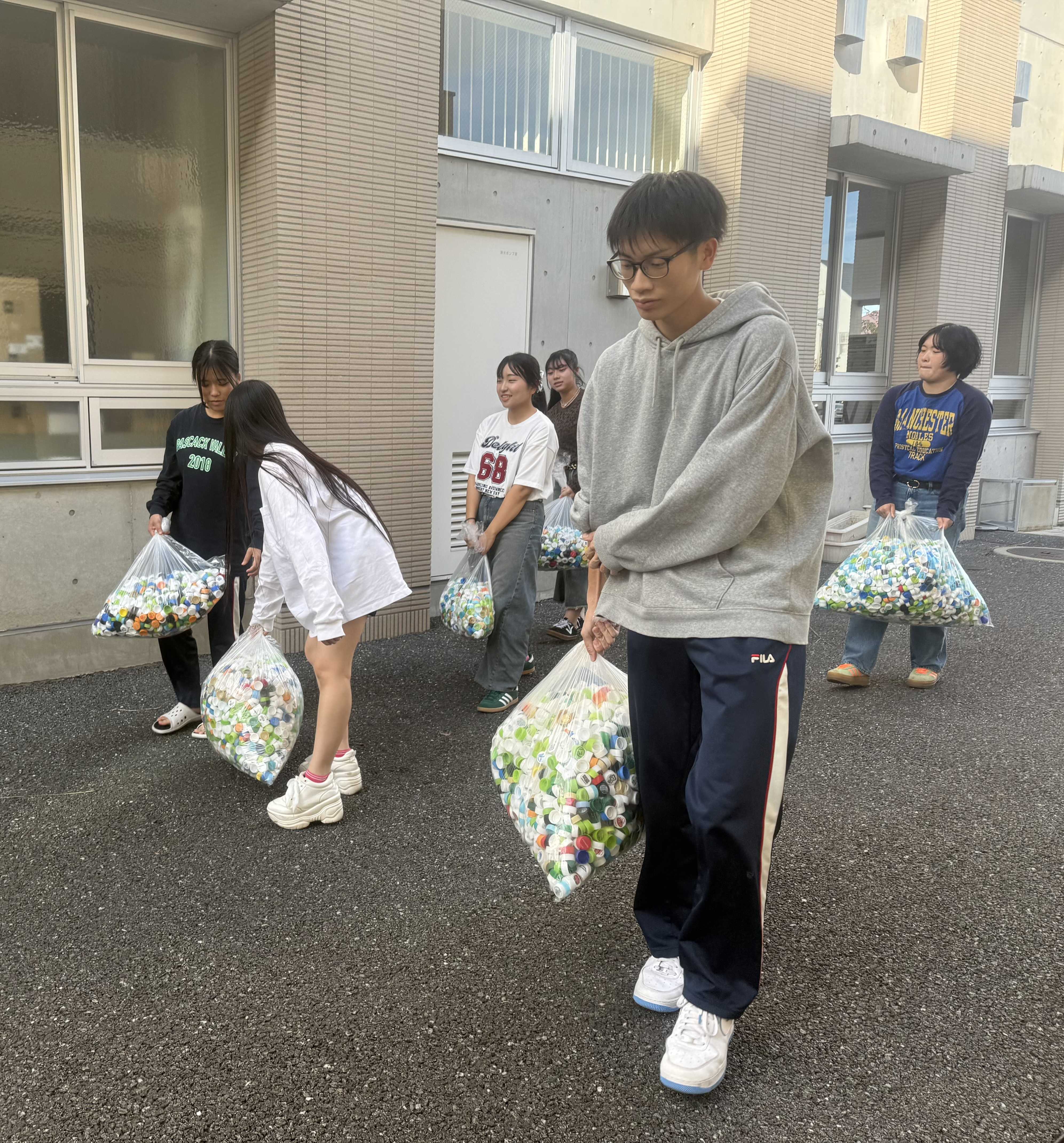 本学では学友会主導によりSDGsの取り組みの一環としてペットボトルのキャップ回収を行っています♲