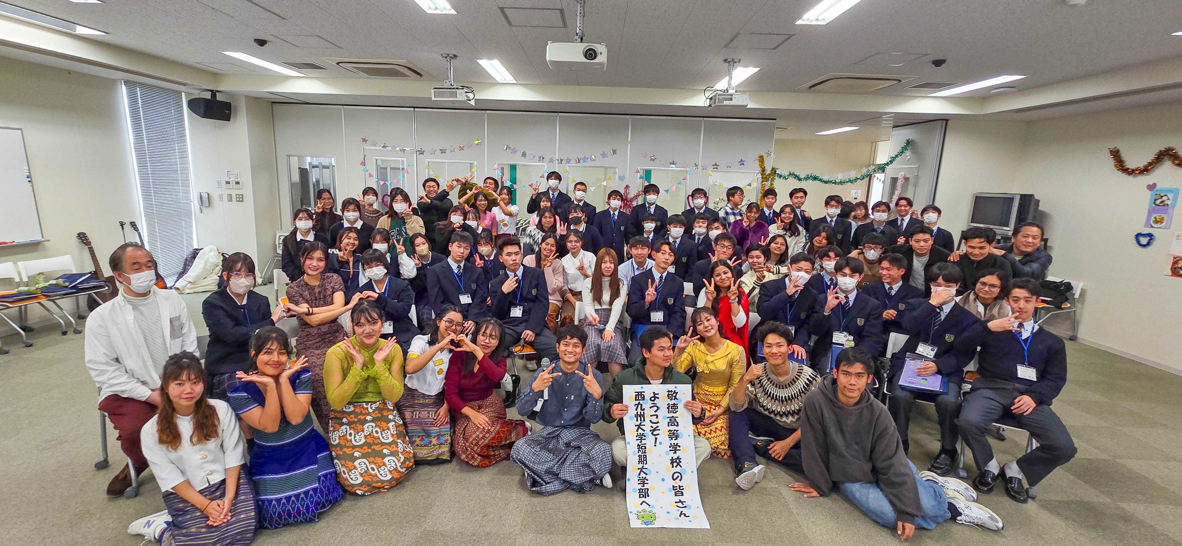- 唐津青翔高校と敬徳高校の生徒さんと介護福祉コースの学生との交流会を行いました。