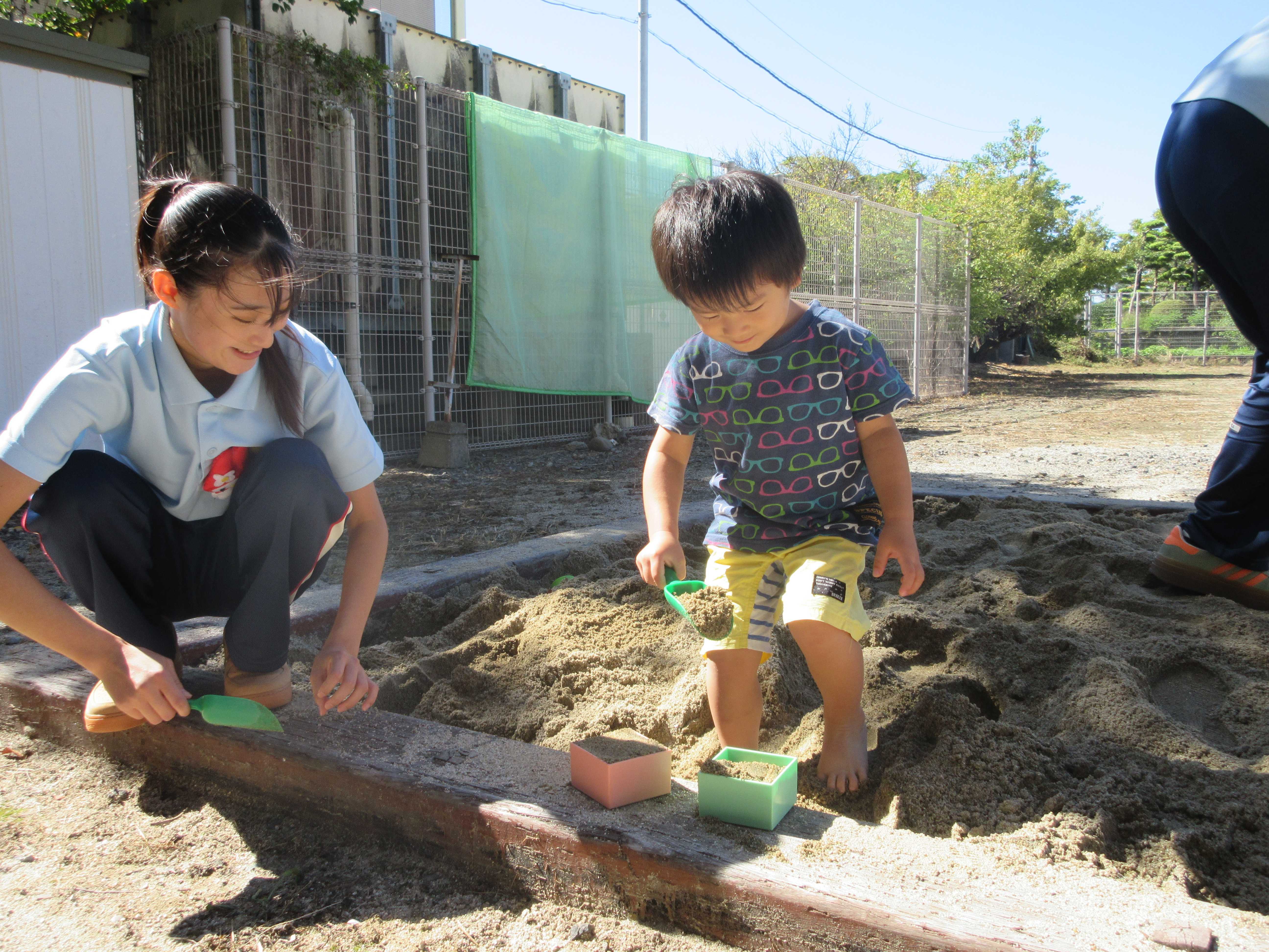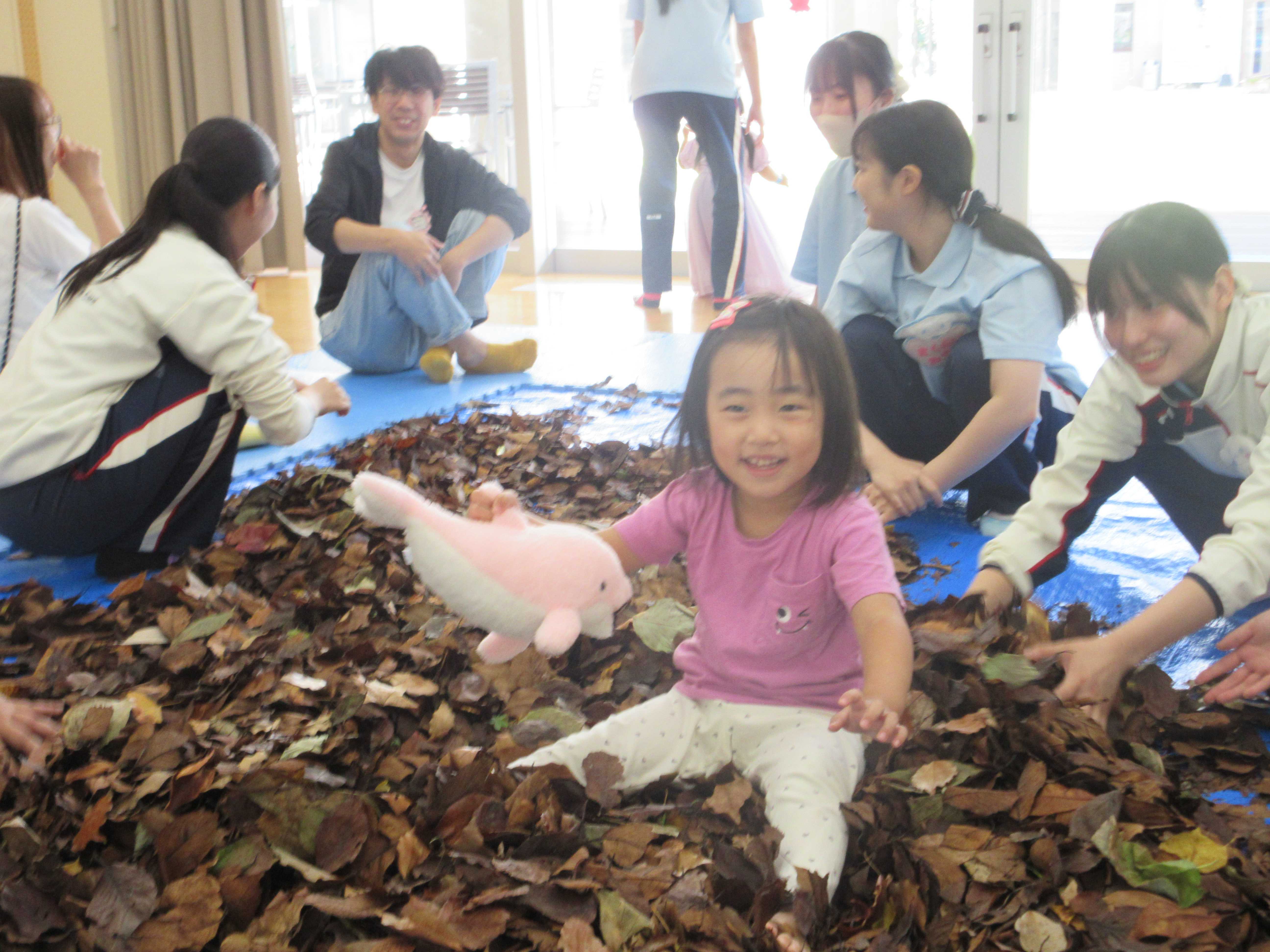 ただし、発案した時は盛り上がりましたが、今年の夏は長かったせいか、10月といっても実際は落ち葉がなかなか見当たらないという状況。実習の合間に公園を回ったり、雨に濡れながら集めたり、洗ったり、危ない部分を取り除いたり、干したり…と様々な過程を経て、ようやく完成した落ち葉プール。もう少し沢山集めたかったところですが、みんなの努力と思いがこもったプールとなりました。
