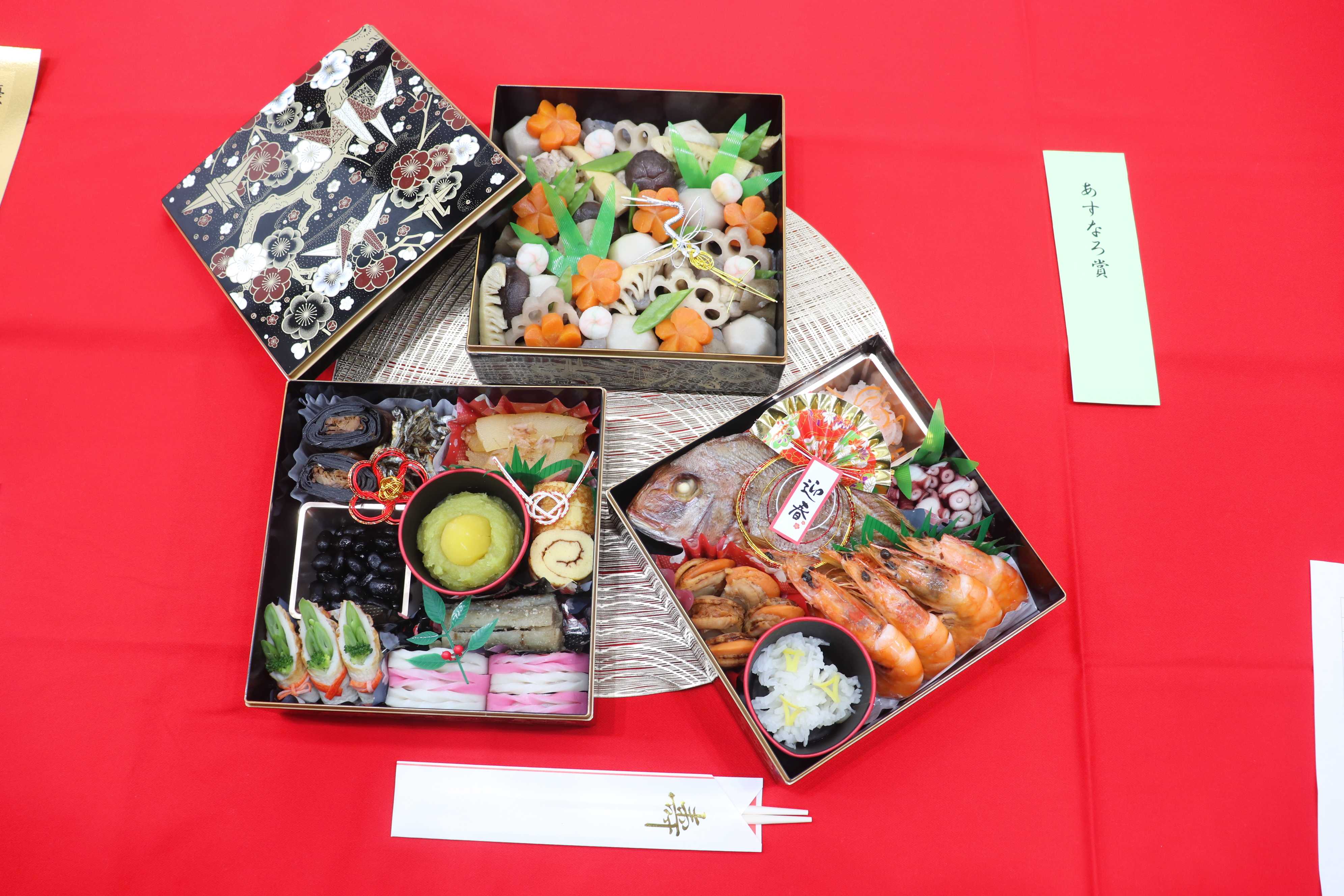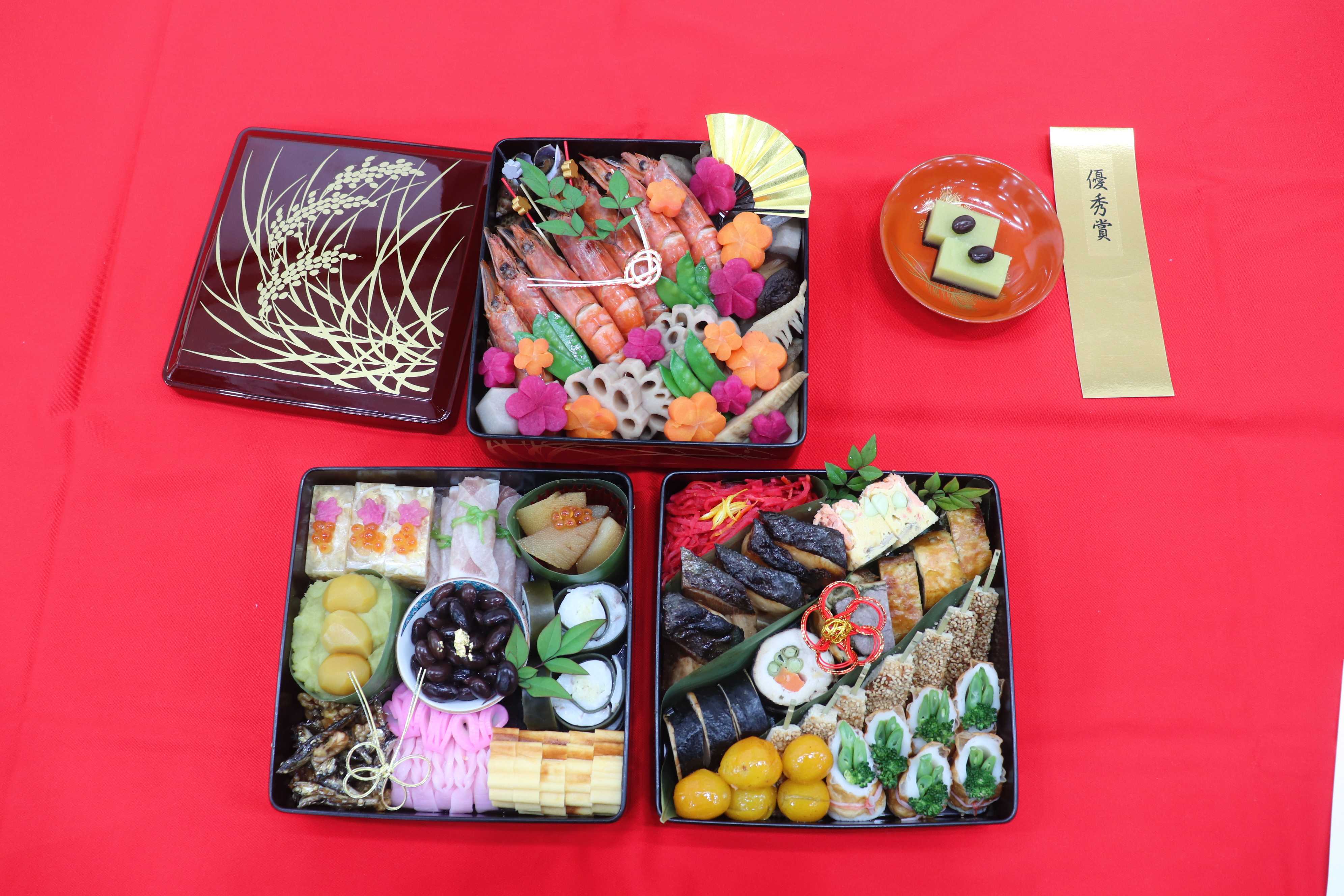 今年度は、おせち料理18作品、海外料理2作品、デコレーションケーキ47作品、料理紹介ポスター10作品と多くの作品が並びとても華やかな大会になりました。