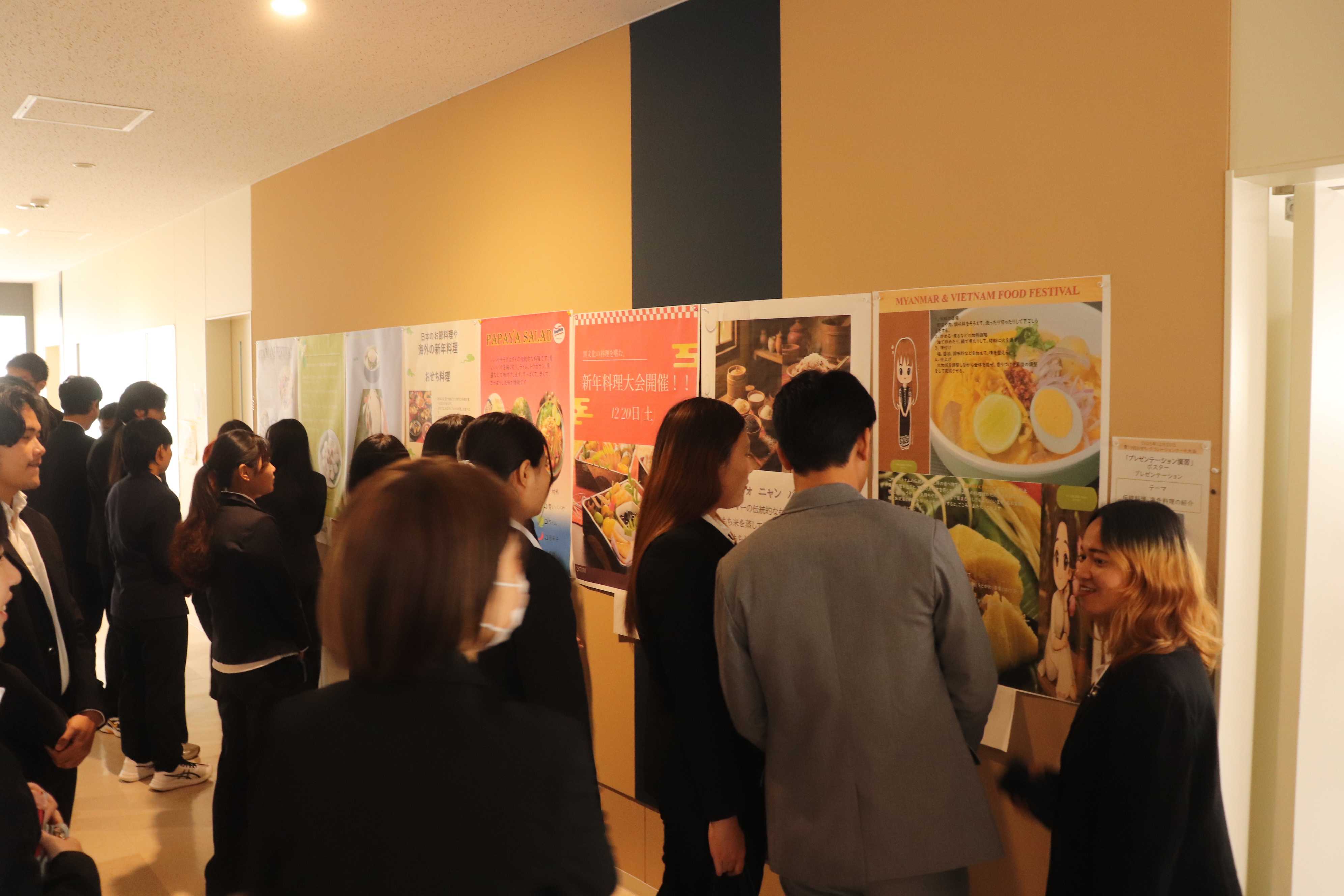 食健康コース2年生はおせち料理と海外料理に分かれて母国の料理を作成し、1年生はデコレーションケーキ作成で参加しました。多文化コース1年生はデコレーションケーキと料理紹介ポスターの2グループに分かれて参加をしました。