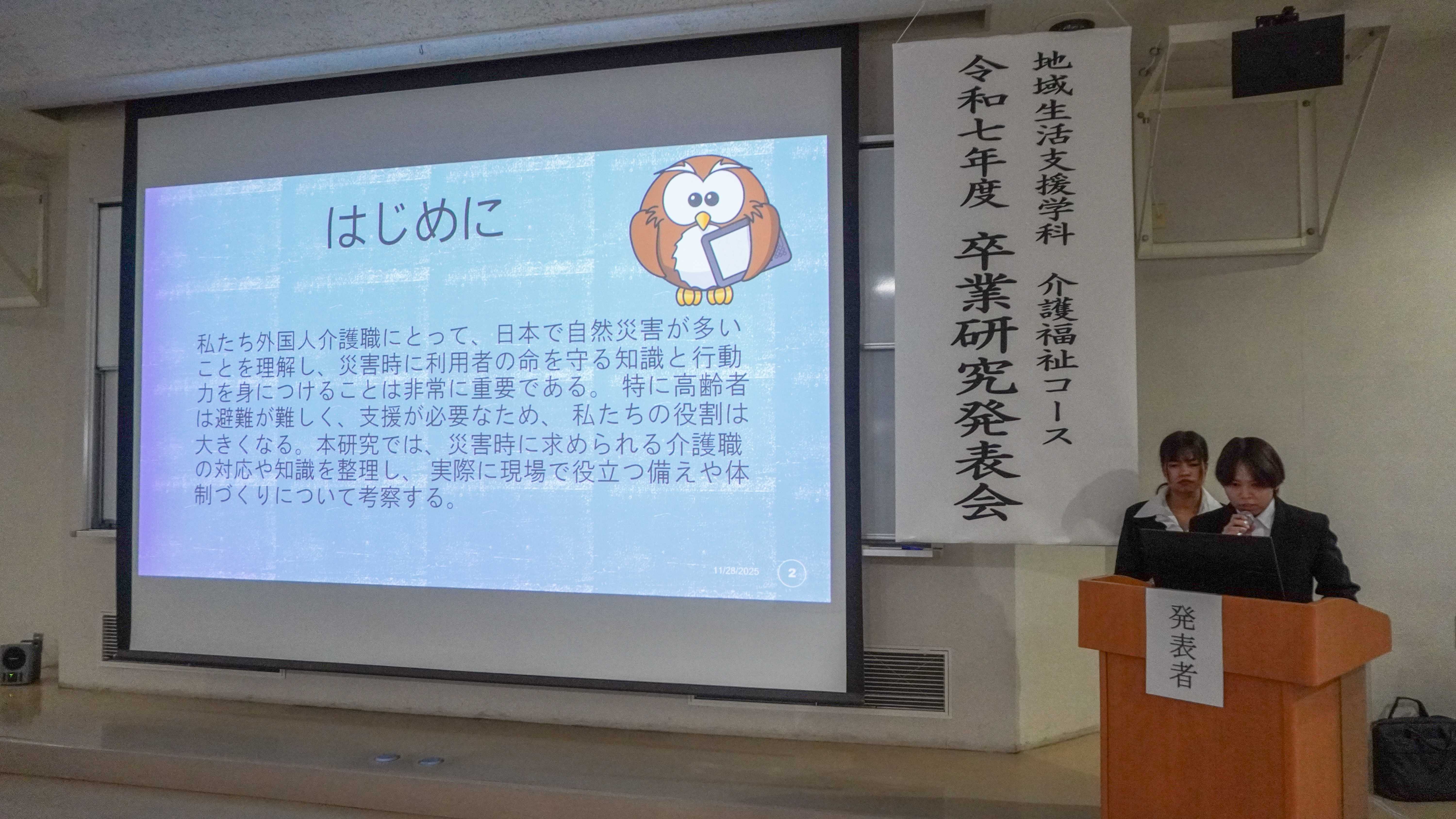 11月28日、介護福祉コースの卒業研究発表会が行われました。