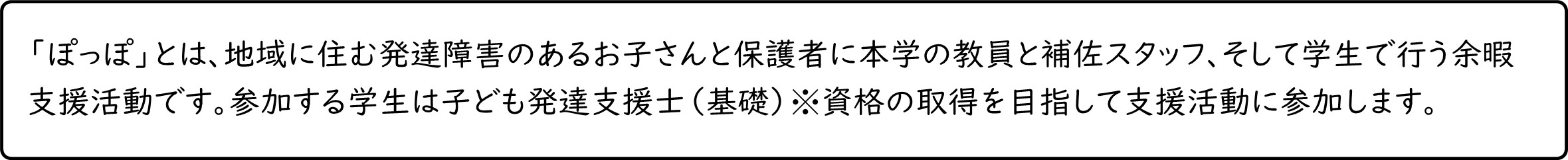 ※子ども発達支援士は、幼稚園、保育所、小学校等に関する免許・資格を有する方で、子どもの成長・発達に関する知識や技術の学修をもとに、発達障害等のある子どもの困り感に気づき、子どもによりそった支援ができ、また保護者を支援できる方に対して、佐賀県の5つの大学と短期大学で組織された大学コンソーシアム佐賀が認定する資格です。