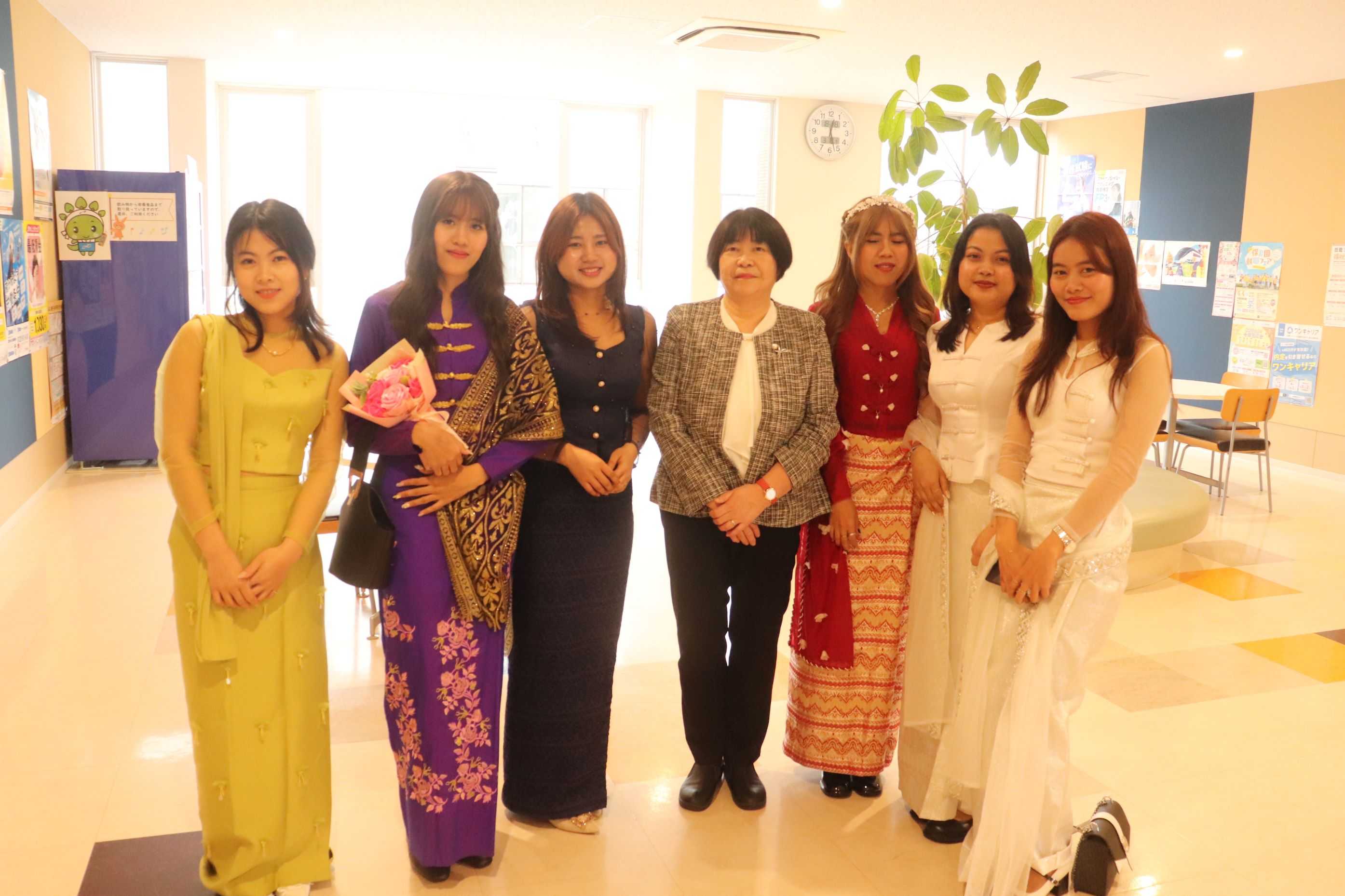 授与式後は大学へ戻り、卒業生代表者が福元裕二学長先生に記念品をお渡ししました。