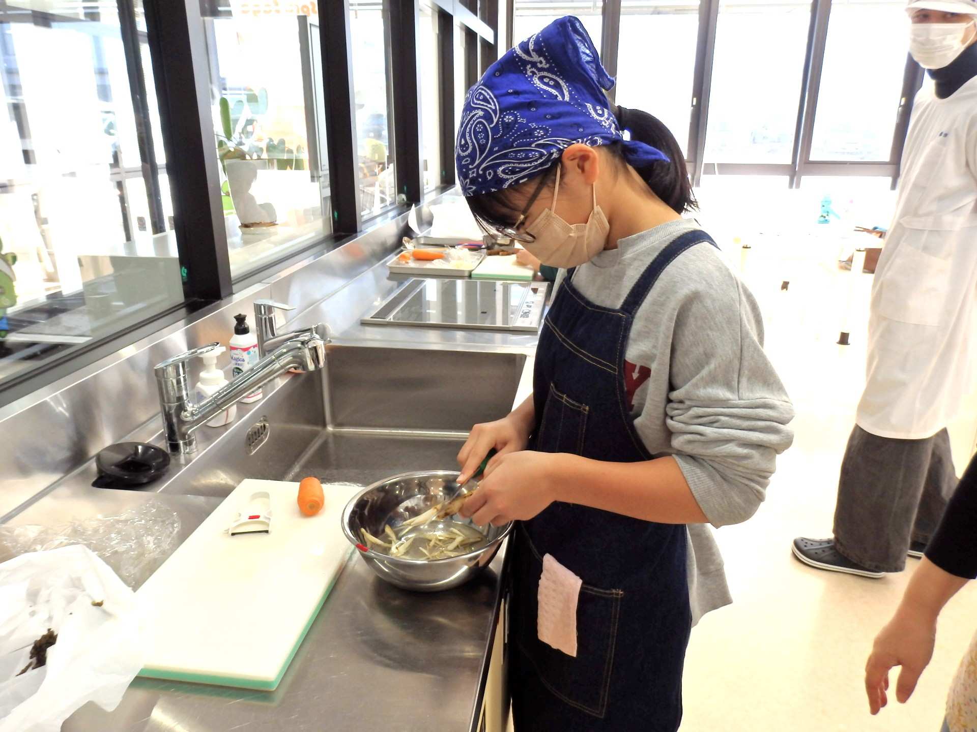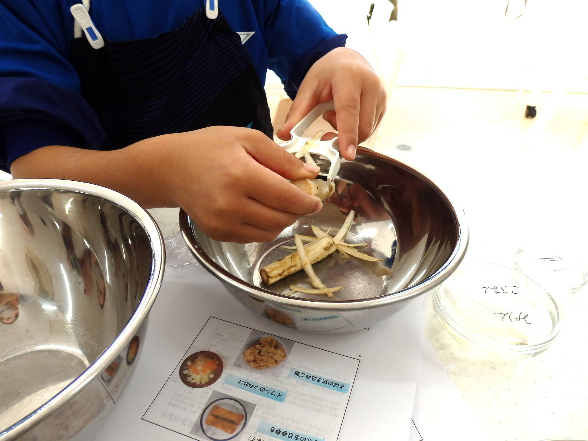 具材を切ったり、ささがきごぼうに挑戦したりして、ふっくら完成