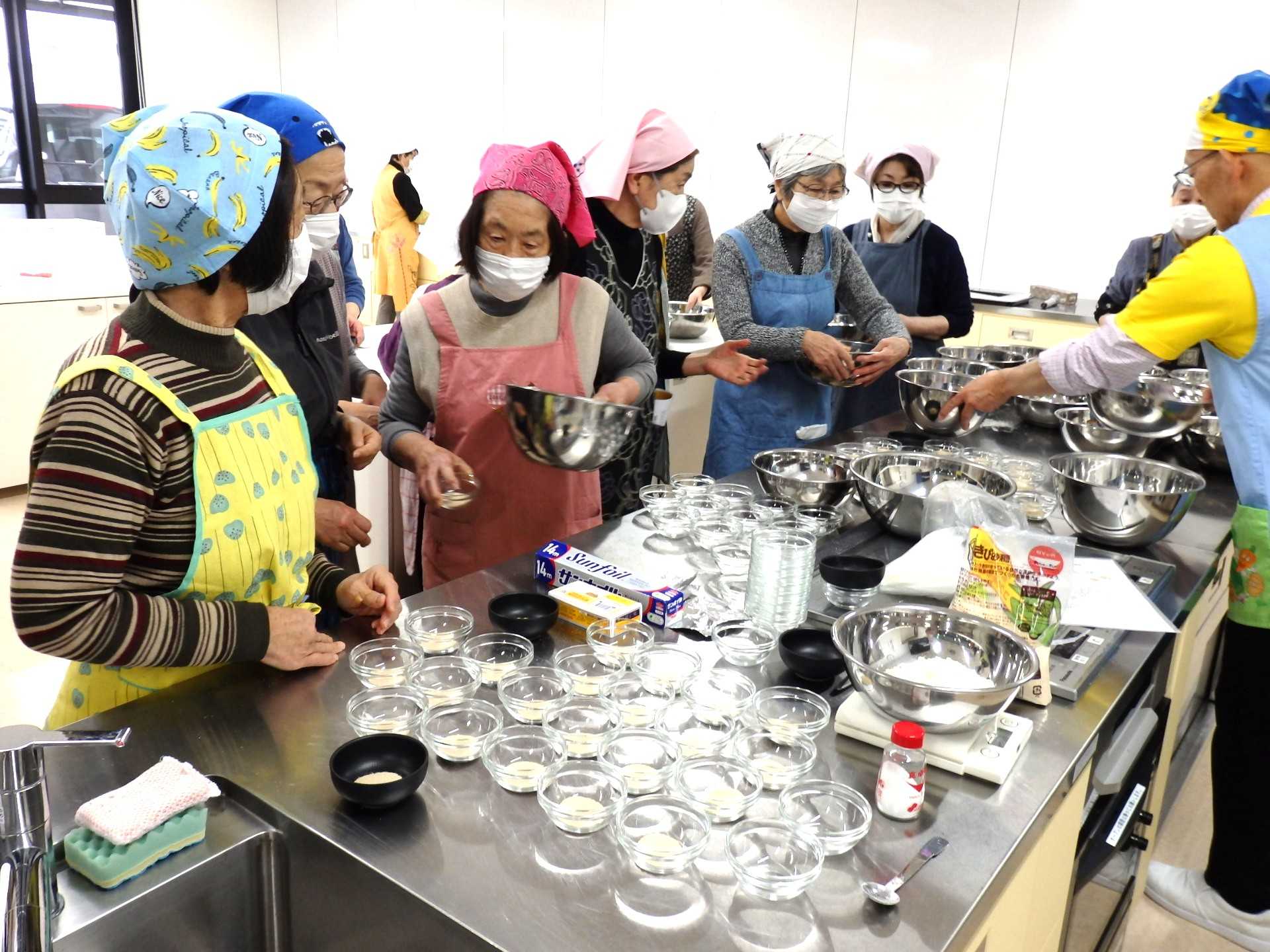 あらかじめ軽量してある材料を各自で取り、分量の水をいれて混ぜていきます。