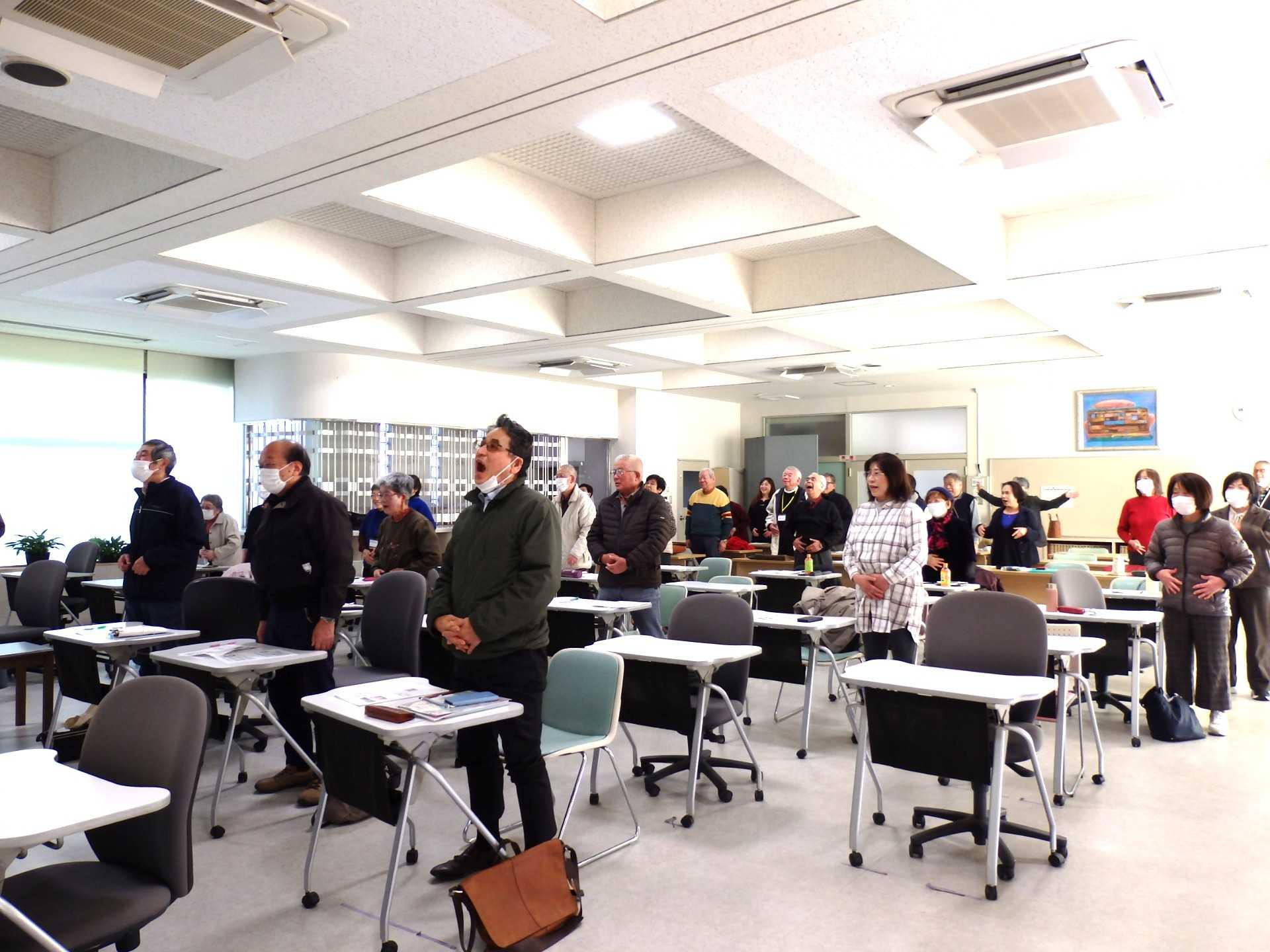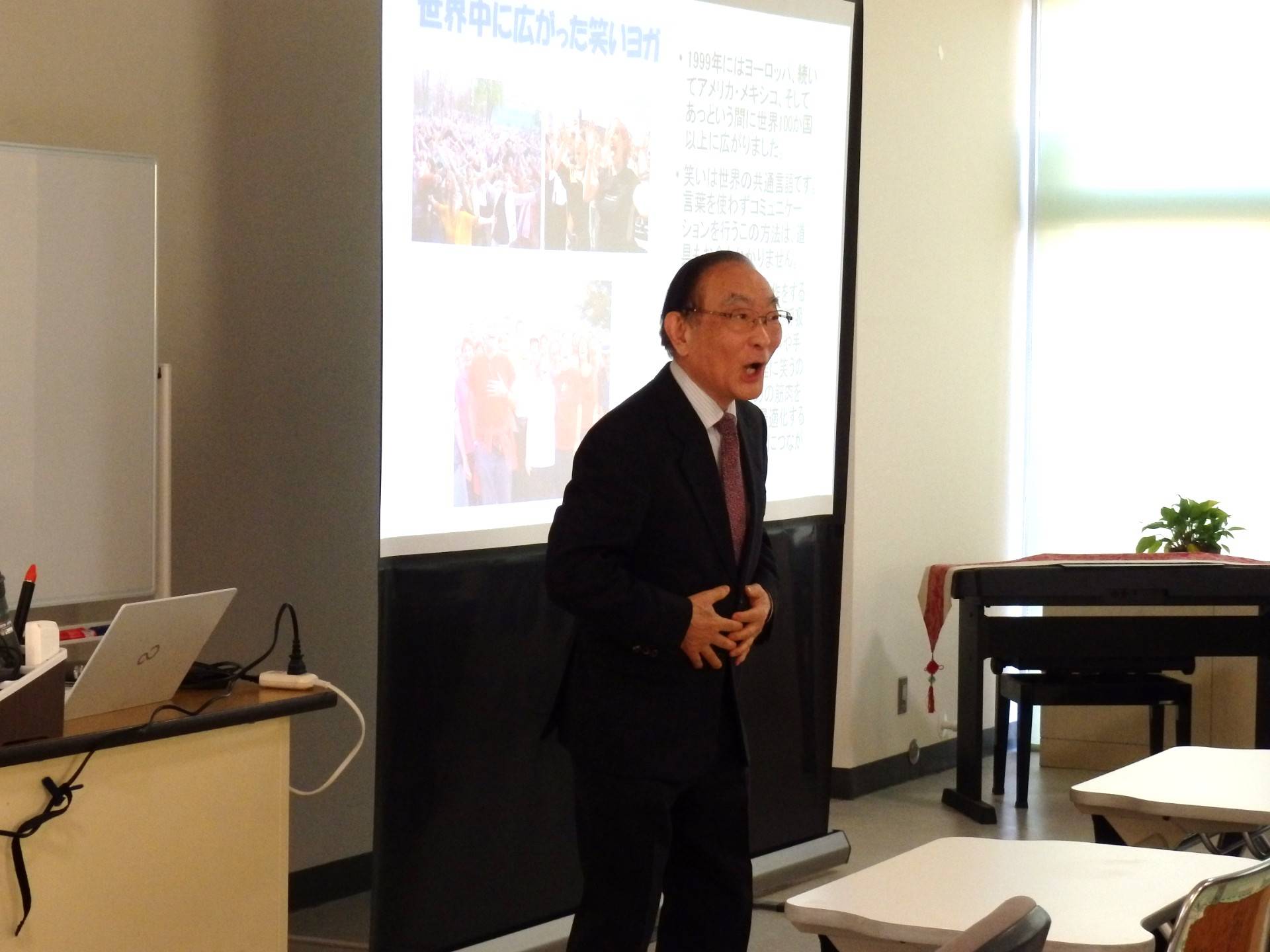 先生の講義を聞いた後は、先生のお手本をみて、みんなで元気に笑いヨガをしましたよ~