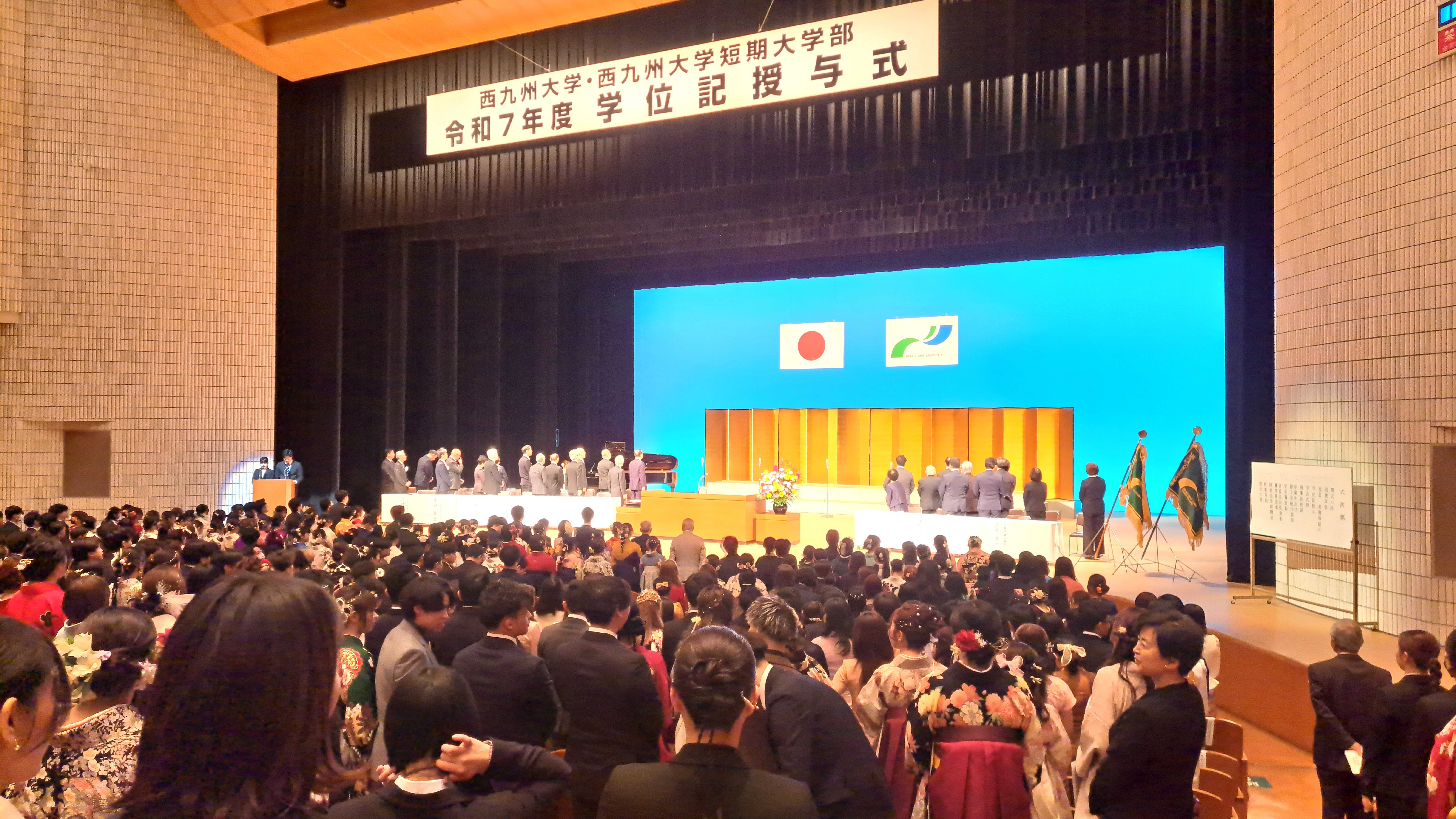 授与式終了後は、大ホールへ移動をして、大学・短大全体の卒業式に参加をしました