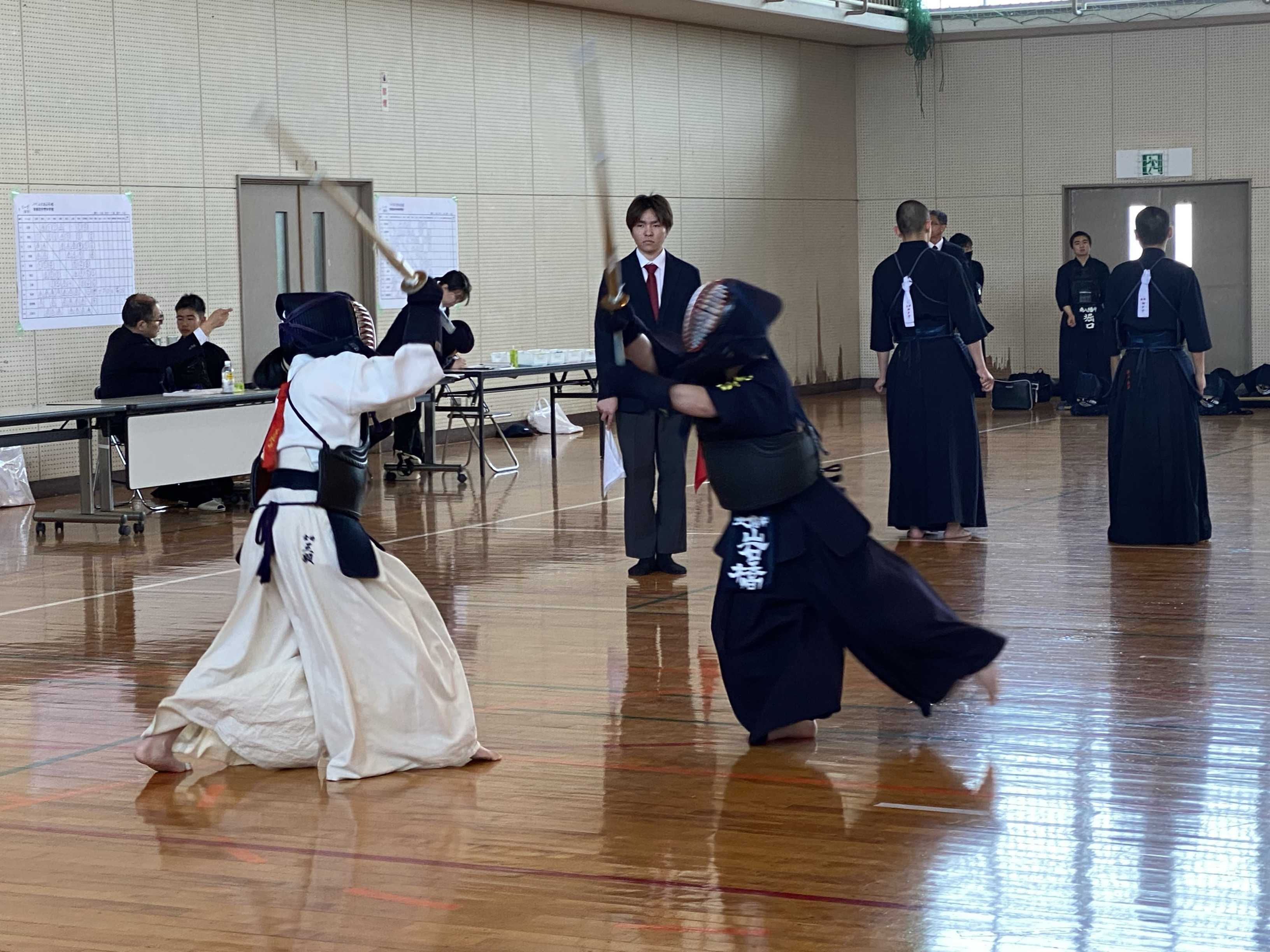 本学の剣道部は現在、スポーツ健康福祉学科の新2年生 男女7名で活動しています。 この度、3月末に神埼中央公園体育館(神埼市)で開催された「神埼市長旗 第36回全国選抜中学生剣道大会」に審判員として参加し、大会初日のプレリーグ戦で審判を務めました! 本大会には全国から男女各80チームが集い、頂点を競いました。 真剣勝負に挑む中学生の選手たちから多くの刺激をもらえたようです。