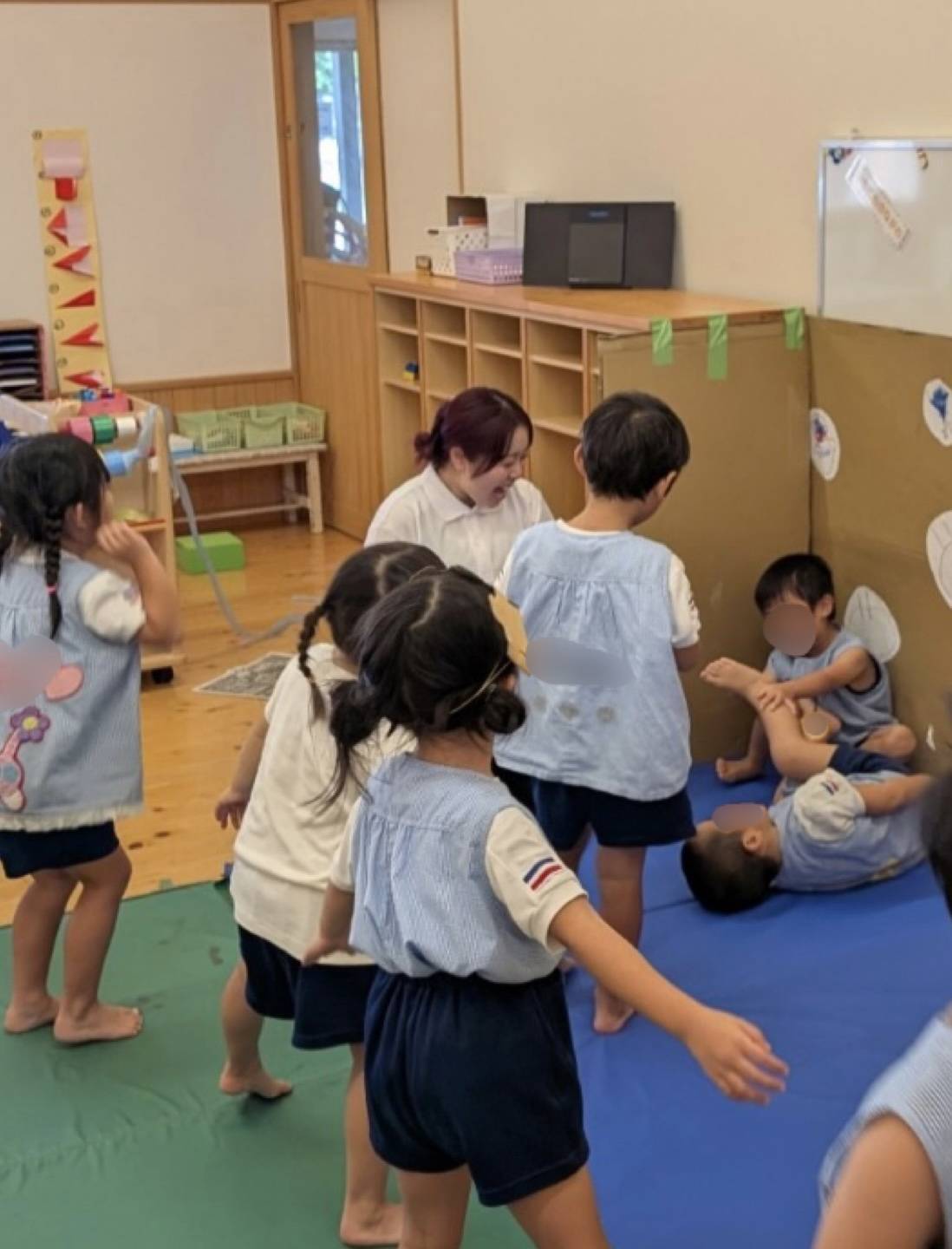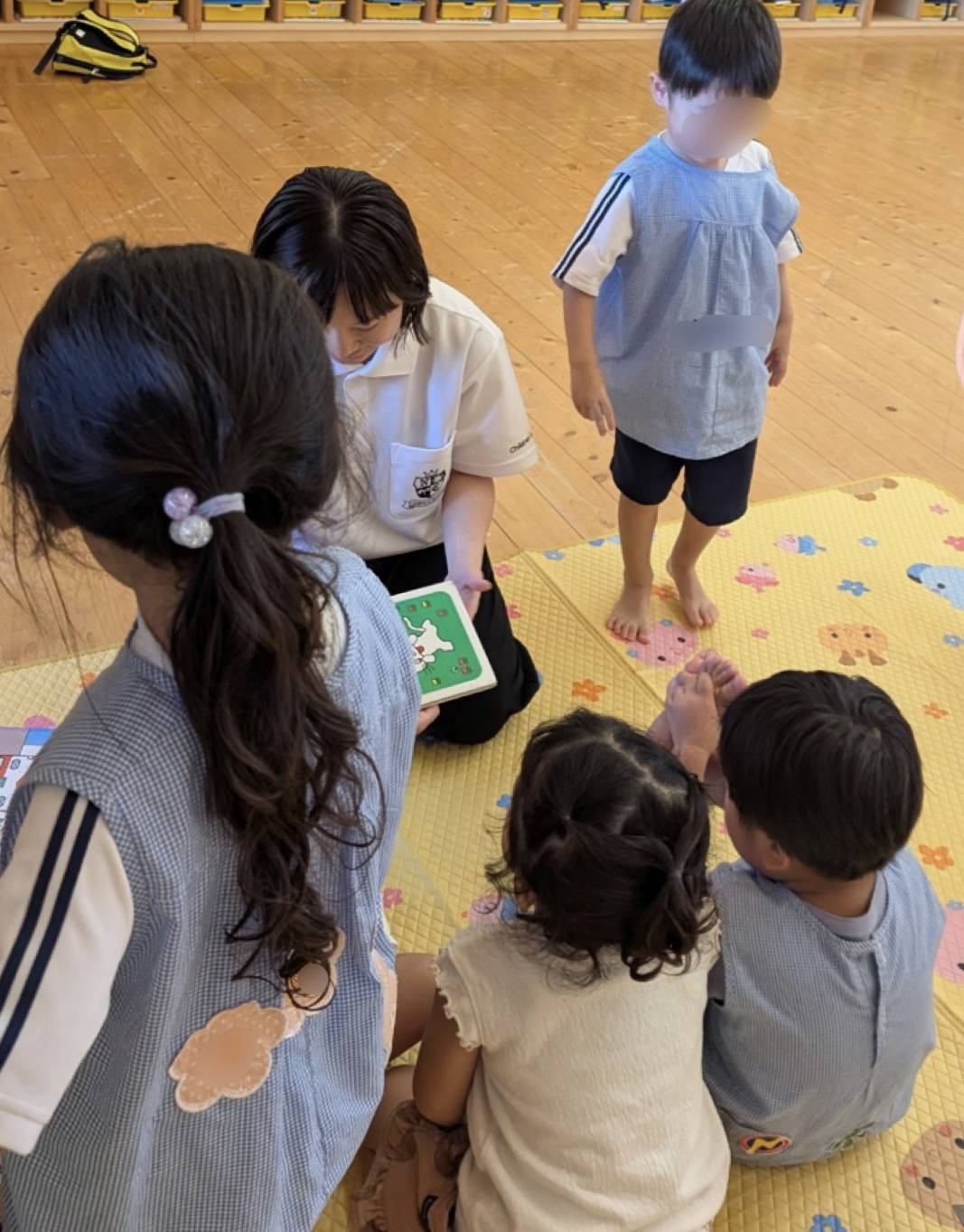 2人の学生の方とも意外とスムーズにクラスに溶け込み園児たちと楽しむことができていました。