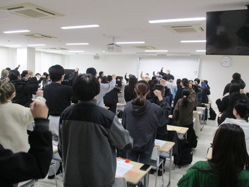 今年も学長、向井先生、学部長より激励の言葉をいただき、4年生たちも気が締まったことでしょう