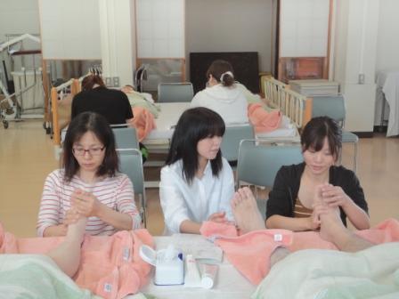 後半は足裏マッサージを実際に行いました。勉強しつつもマッサージで気持ちよくなりました。