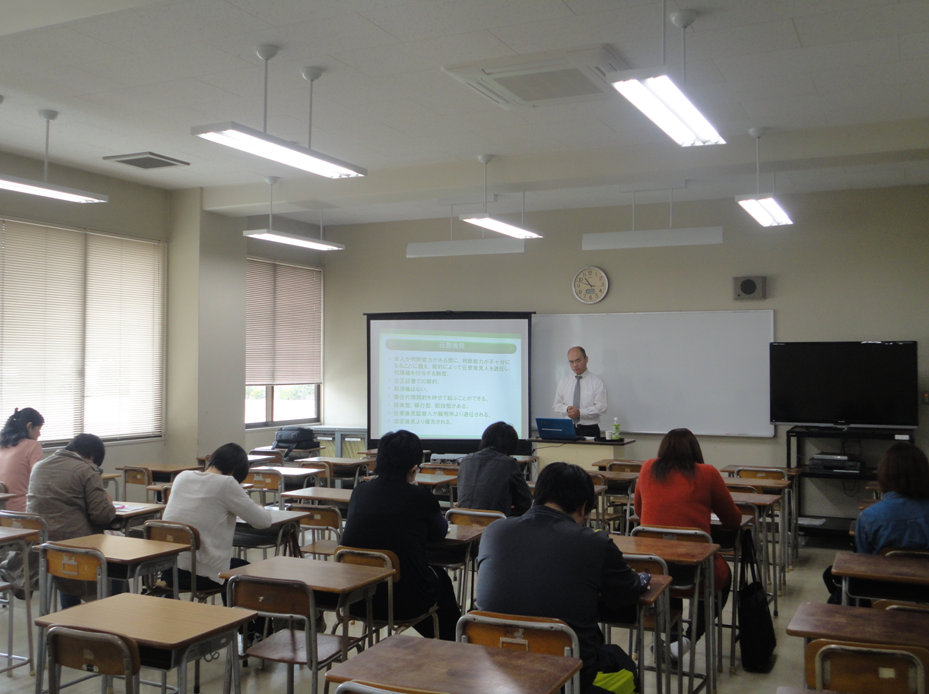 講義は10時から12時までの2時間。パワーポイントを使ってわかりやすく説明していただき、受講者からは、「制度の仕組みがよくわかった」「気になっていた内容だったので良い機会だった」などの声が聞かれました。