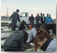 | 地元の皆さんの声掛けを背に作業開始! | 肌寒さを感じます。次回は長靴も必要です。 |