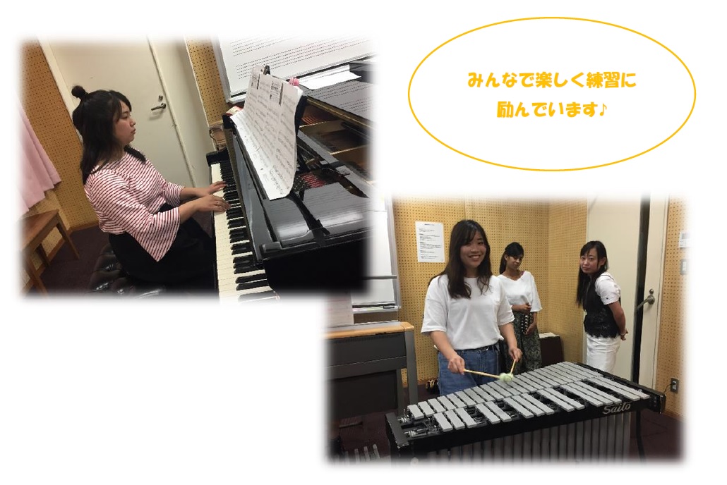 表現・音楽コースの2年生は、卒業研究の一環で12月の実技発表会(表現フェスタ)に出演します。そこで、前期の締めくくりとして、もうすぐ中間発表会が行われます。今日は器楽アンサンブルメンバーより、練習風景と意気込みをお伝えいたします