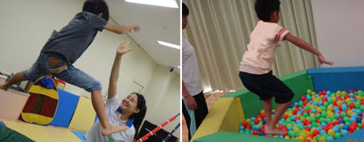 サマーキャンプから約1か月振りの「ぽっぽ」です。子どもたちはトランポリンやボールプールで遊び、前回にも増して元気いっぱい。とても楽しみにしてくれていたようです。