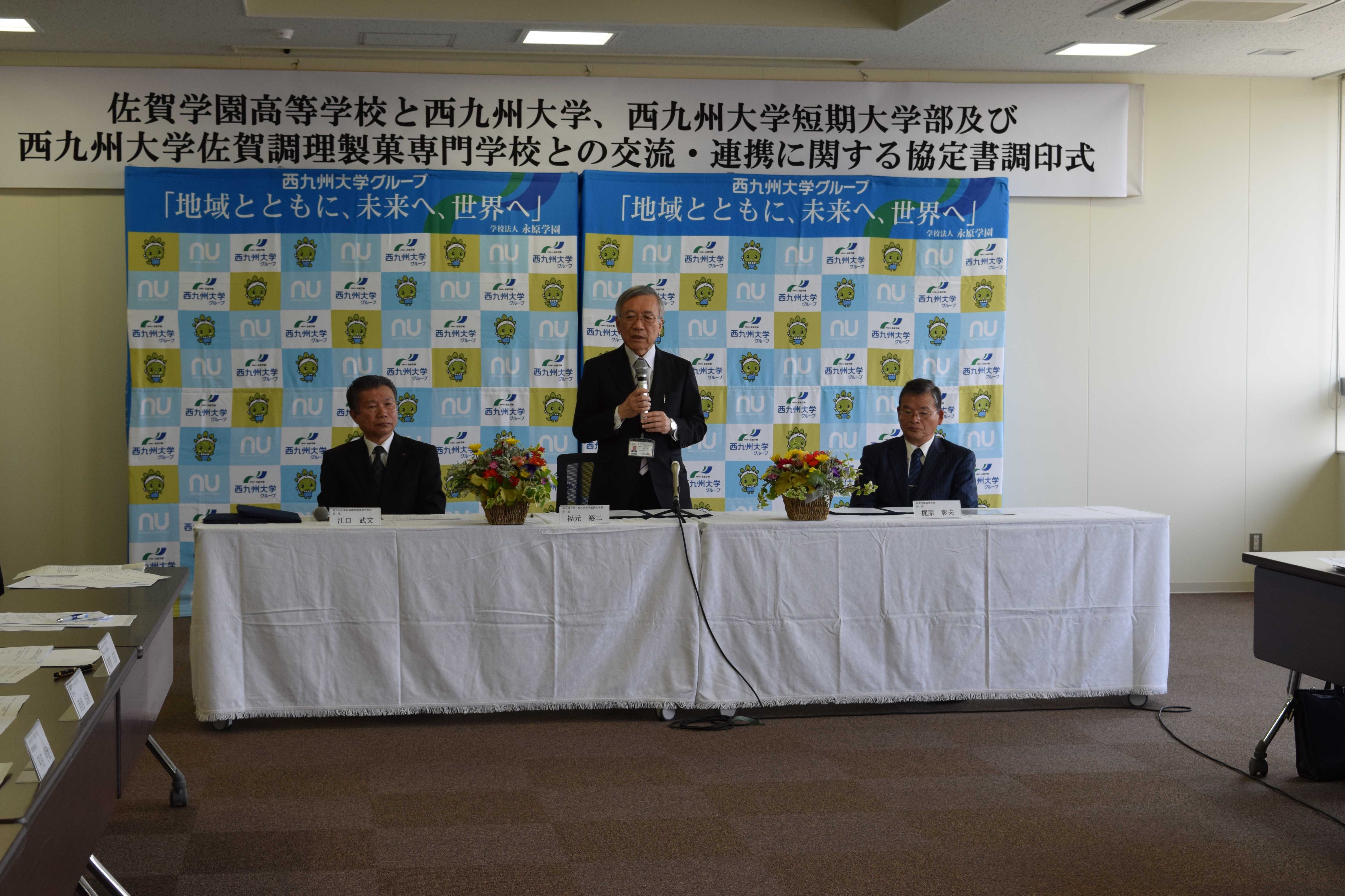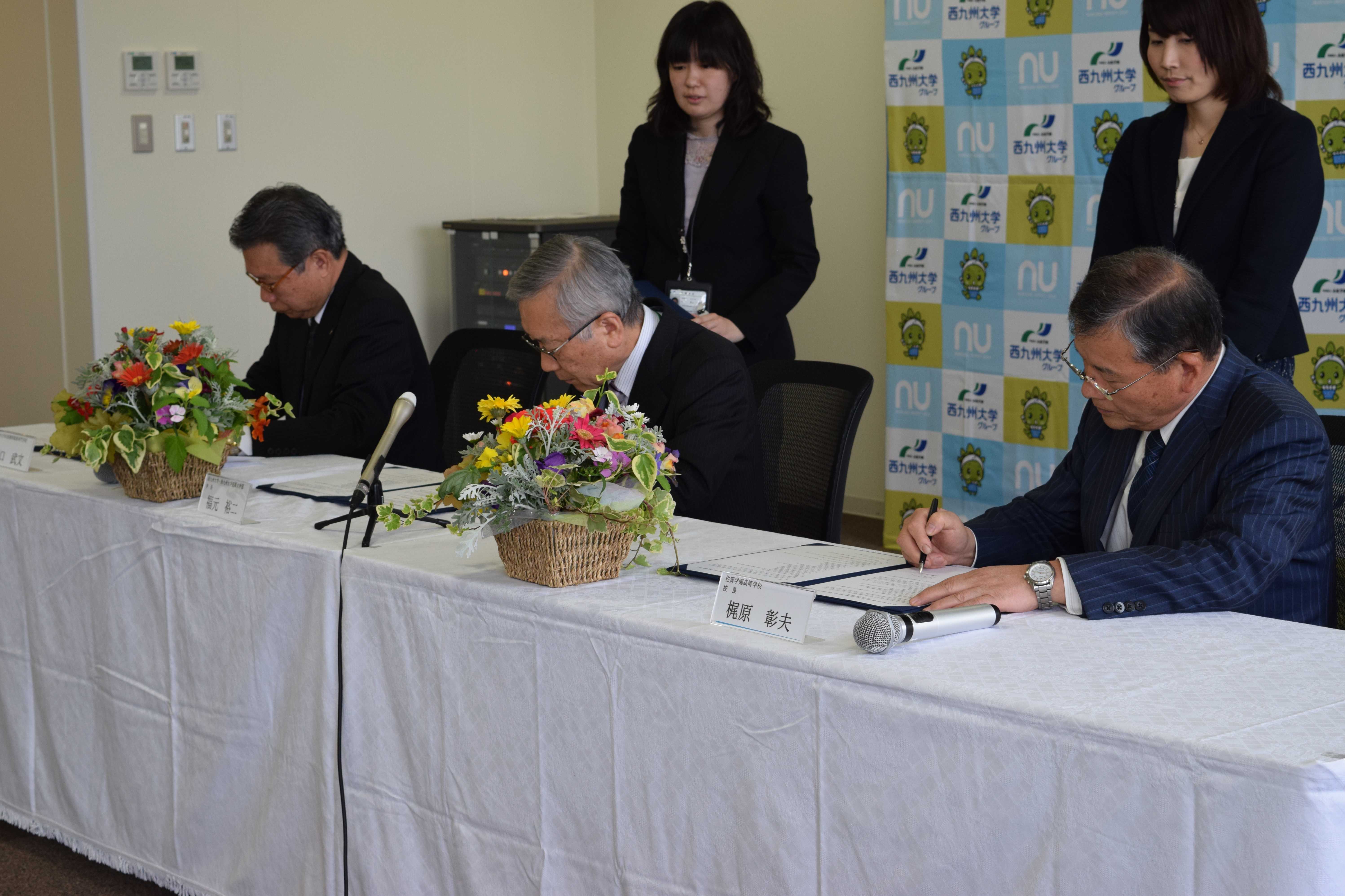 平成29年4月25日(火)に西九州大学佐賀キャンパスにて佐賀学園高等学校と西九州大学グループとの交流・連携に関する協定書調印式が執り行われました。