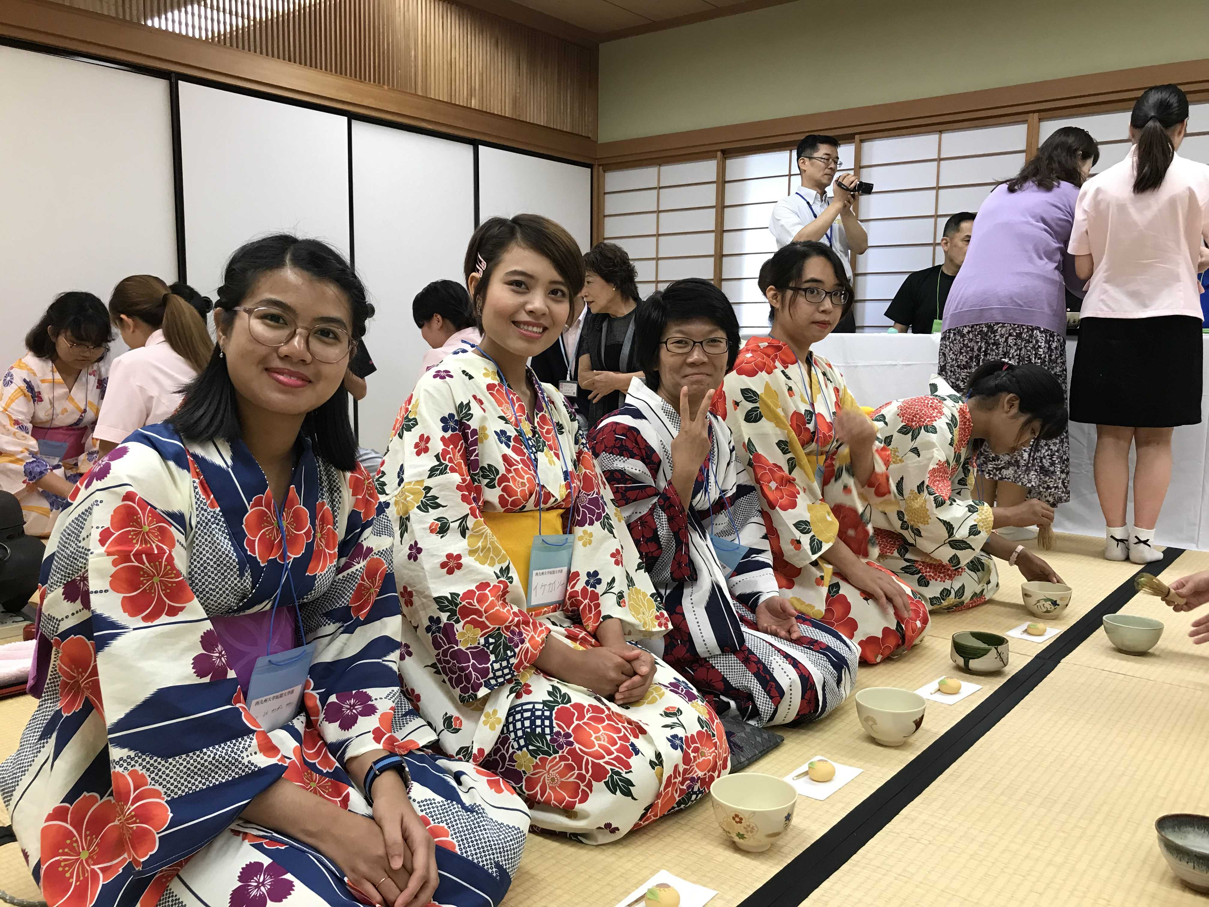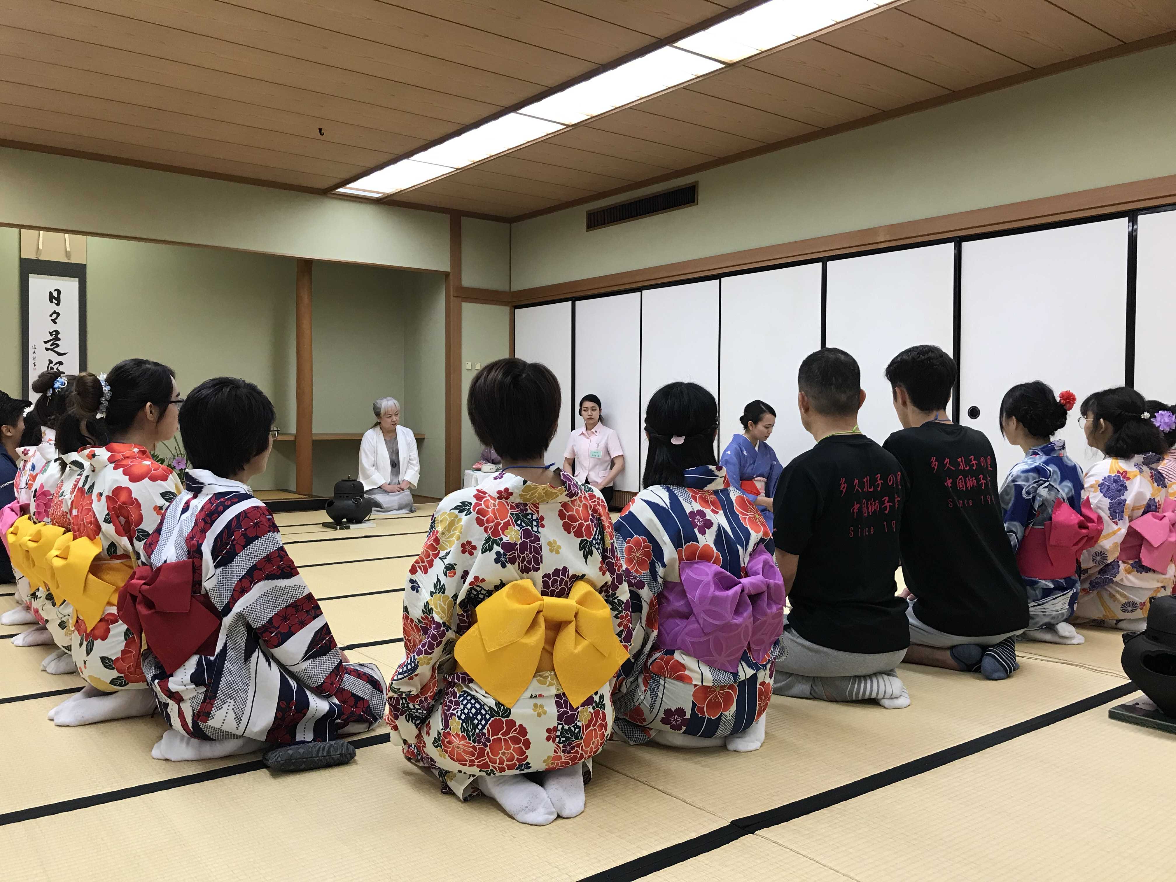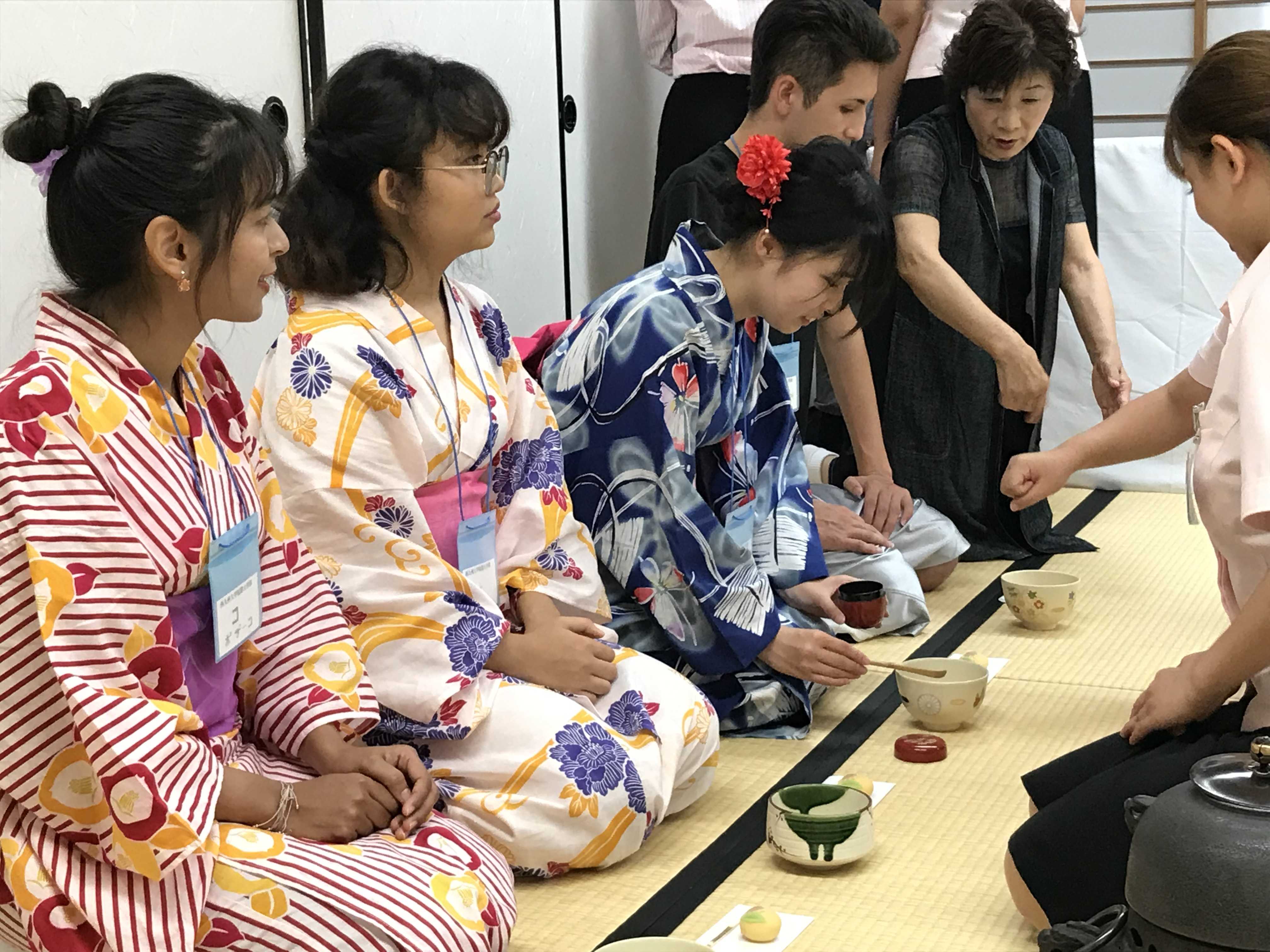 まず、茶道のお手前のご披露があり、本学の学生も立て出し体験をさせていただきました。初めての体験に学生はドキドキでした。