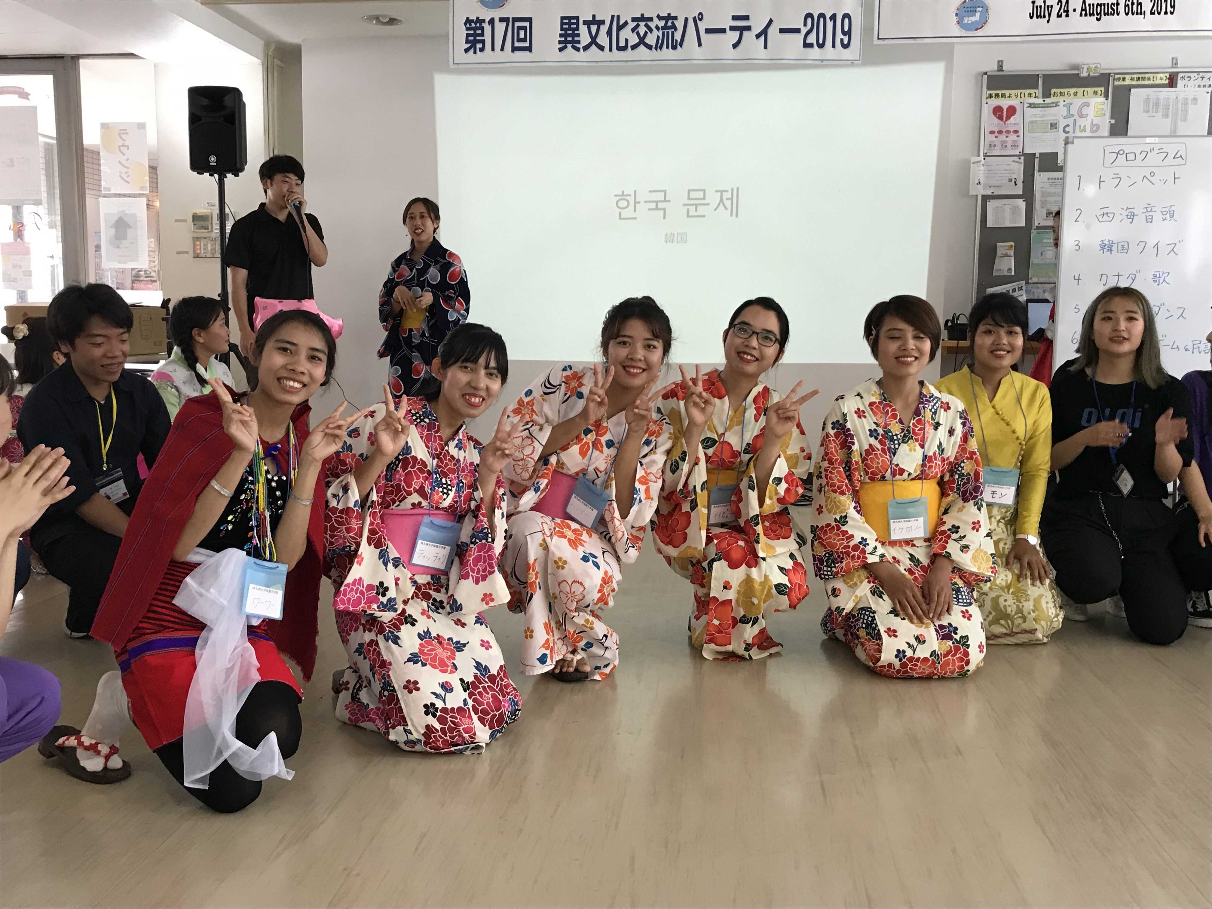 包括連携協定を結んでいる長崎短大で、7月27日(土)に異文化交流イベントが開催され、本学の学生(留学生12名、日本人学生2名)と教職員が参加させていただきました。