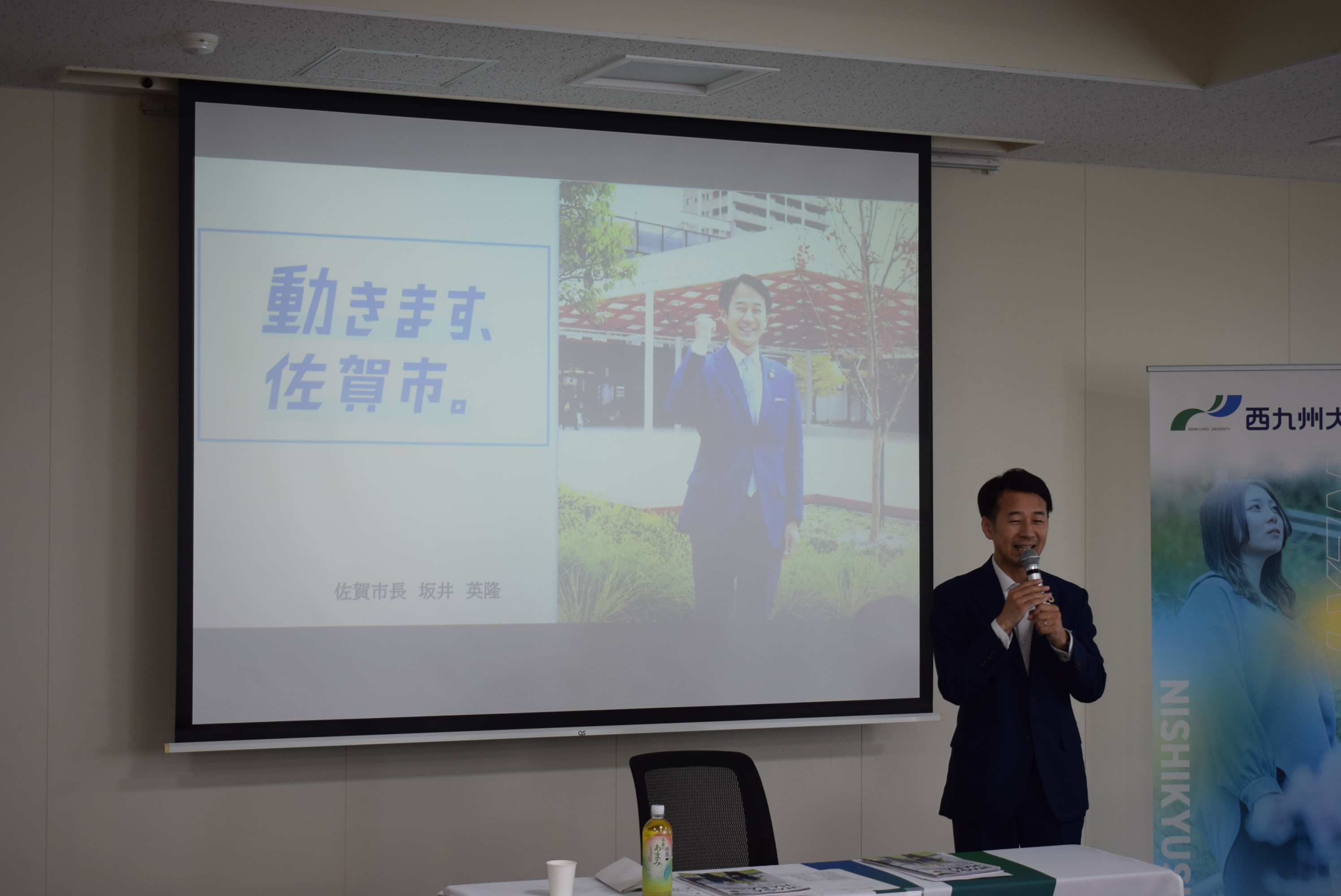 本日、西九州大学佐賀キャンパスにおいて、佐賀市の坂井英隆市長と本学学生とのミニトークセッションを開催しました。