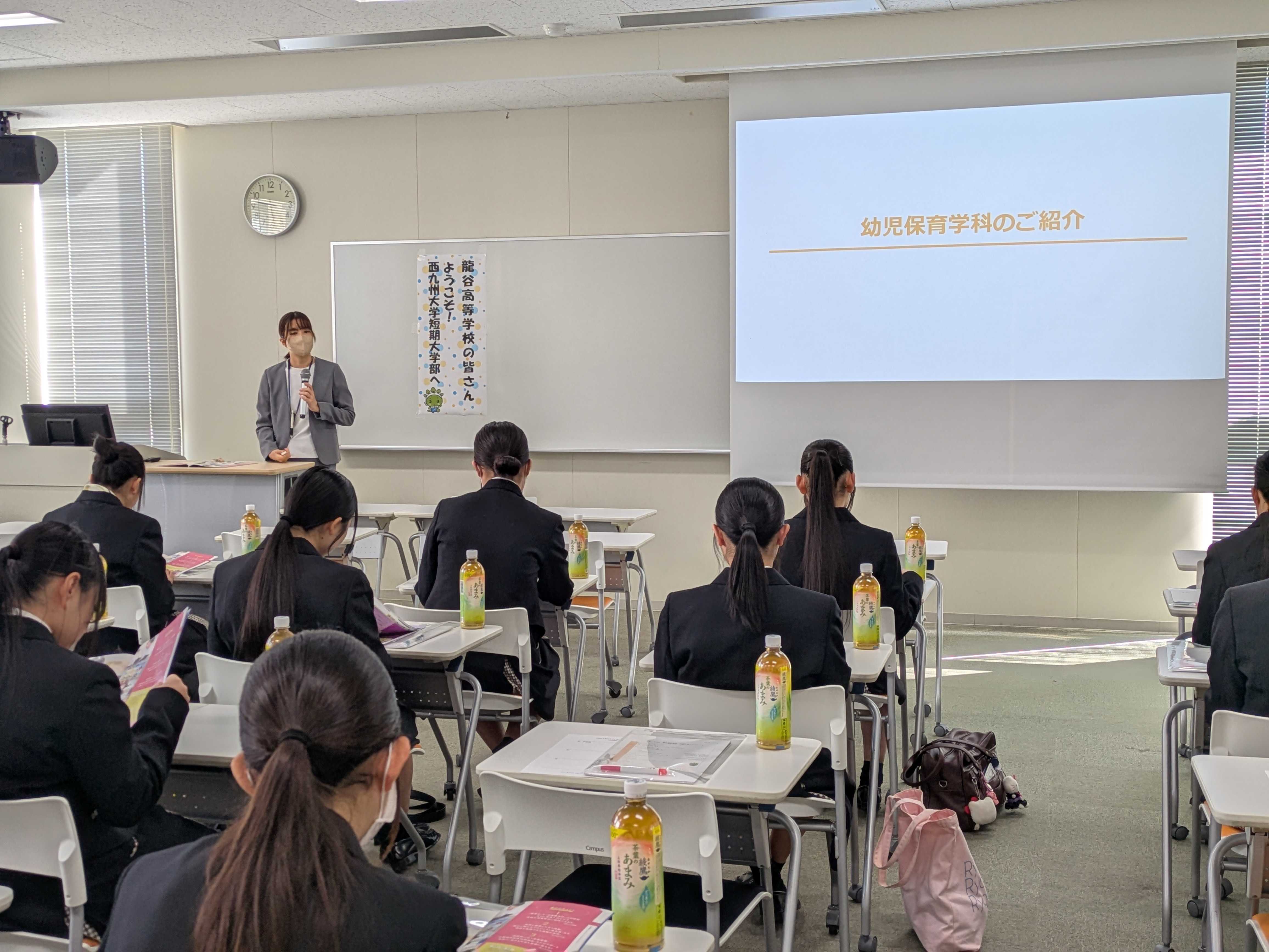 今回は、幼児保育学科の紹介や龍谷高等学校卒業生である本学学生の話、体験講座、施設見学といったプログラムを用意させていただきました