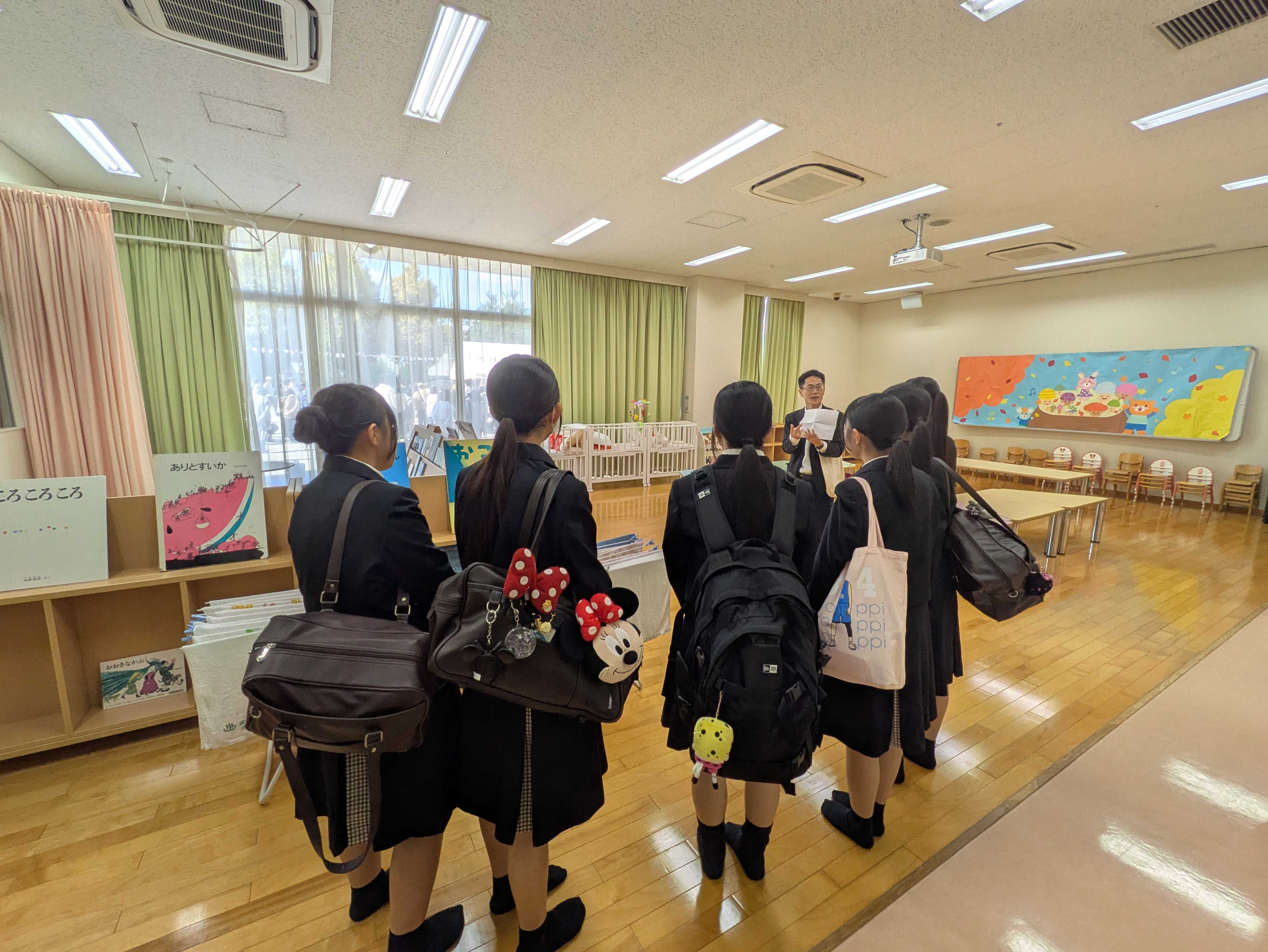 2025年11月1日(土)、龍谷高等学校より保育コース1年生14名と引率の先生1名が学校見学に来られました
