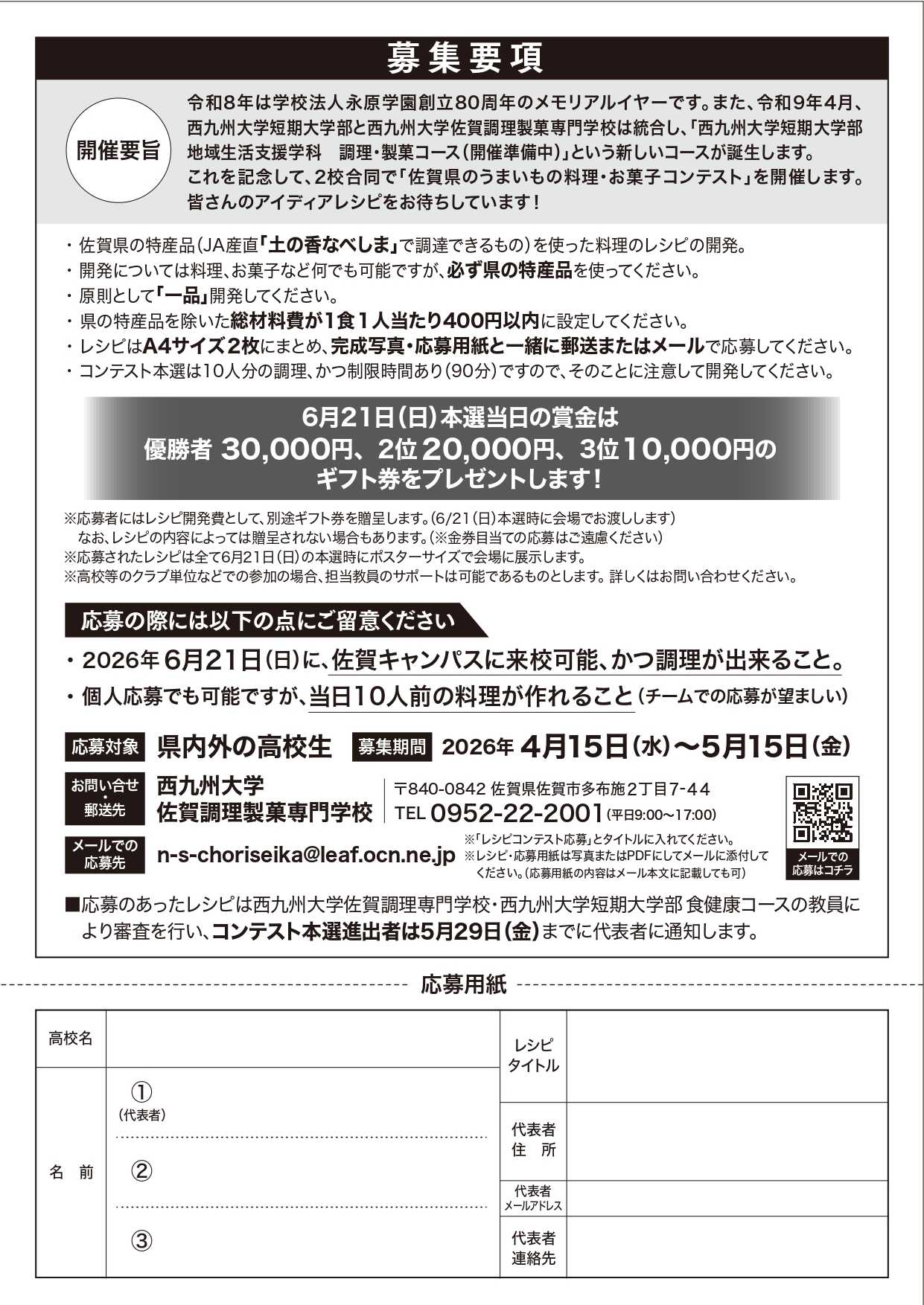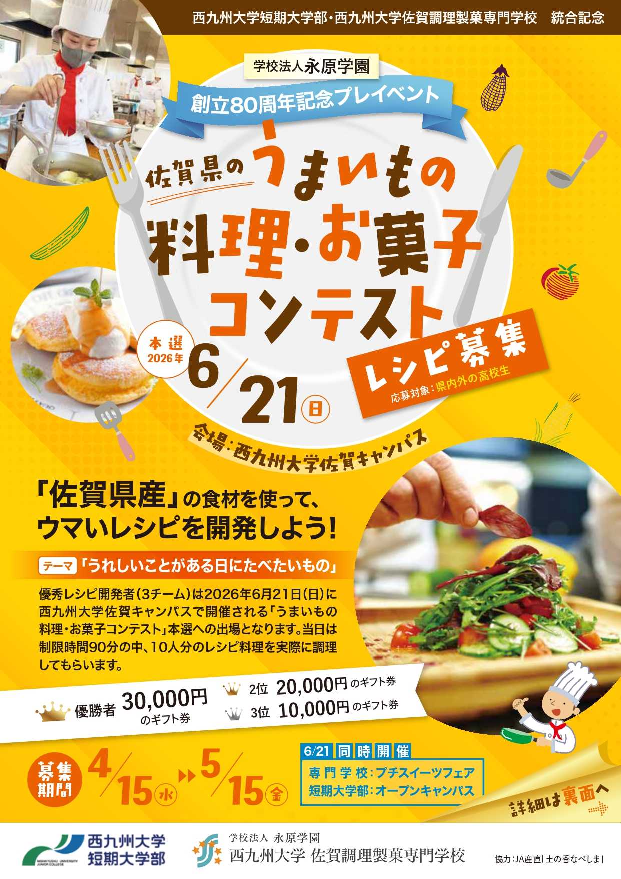 これを記念して、2校合同で「佐賀県のうまいもの料理・お菓子コンテスト」を開催します