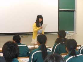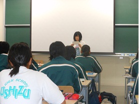 3人とも牛津高校の卒業生です。緊張しつつも自分の体験談を伝えました。