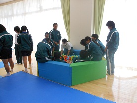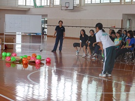 在学生と一緒にボールを使ったレクリエーションを行ったり、