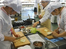 短期大学部の調理実習室を使った、調理実習体験では