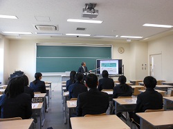 食物栄養学科、生活福祉学科教員の学科説明の後、施設の見学を行いました。