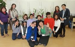 3月12日(木)、西九州大学・西九州大学短期大学部に短期留学中の留学生の華道体験が行われ、華道部の部員もお手伝い(*^^)v