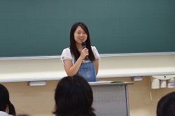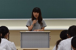 生活福祉学科と幼児保育学科の学科説明の後、神埼清明高校出身の在学生より学生生活の様子などを話してもらいました。