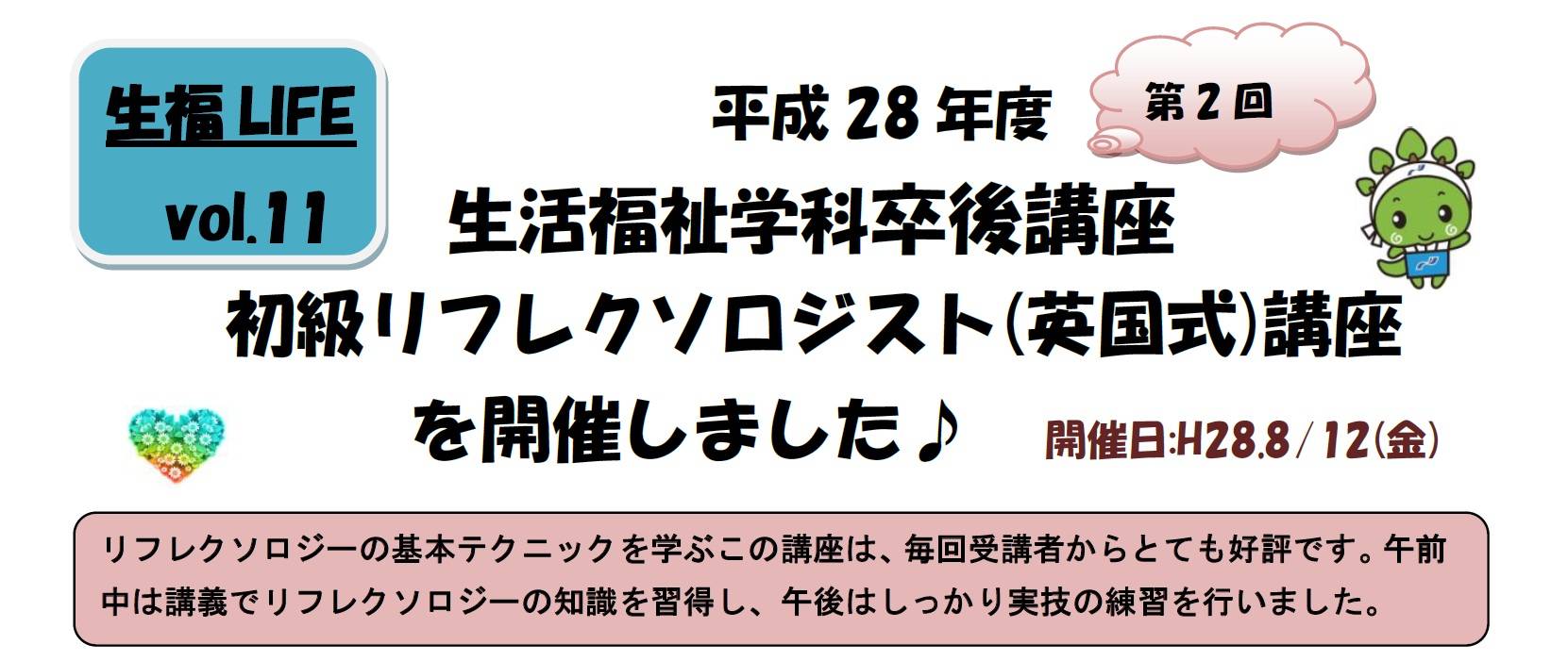 〈生福LIFE vol.11〉平成28年度第2回生活福祉学科卒後講座初級リフレクソロジスト(英国式)