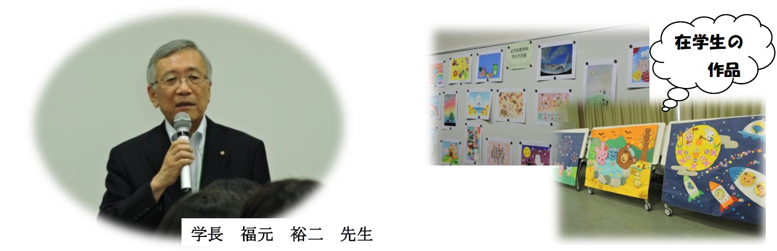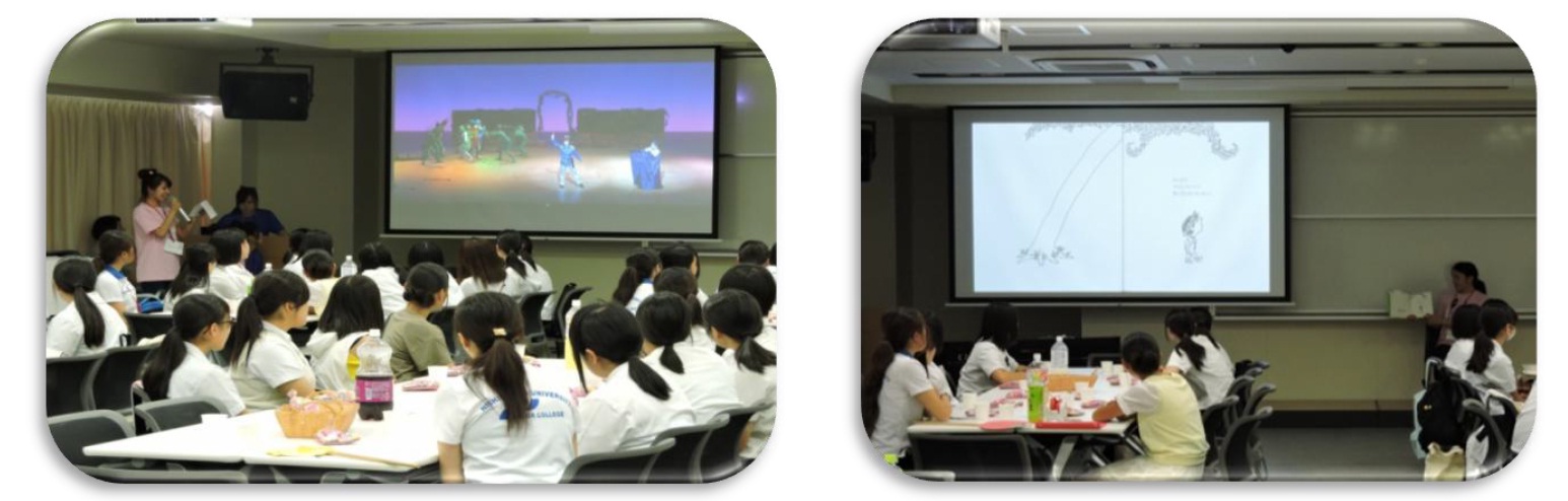 では、表現・音楽コースと心理・環境コースの2年生によるコースの紹介や、絵本「おおきな木」の読み聞かせがありました。お菓子を食べながら、楽しい時間を過ごせたようです。