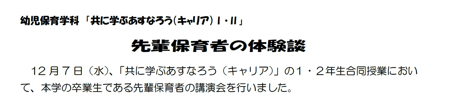 「共に学ぶあすなろう(キャリア)Ⅰ・Ⅱ」先輩保育者の体験談