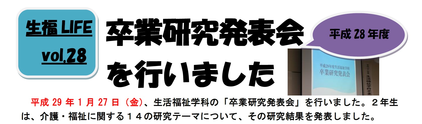 〈生福LIFE vol.28〉平成28年度卒業研究発表会を行いました