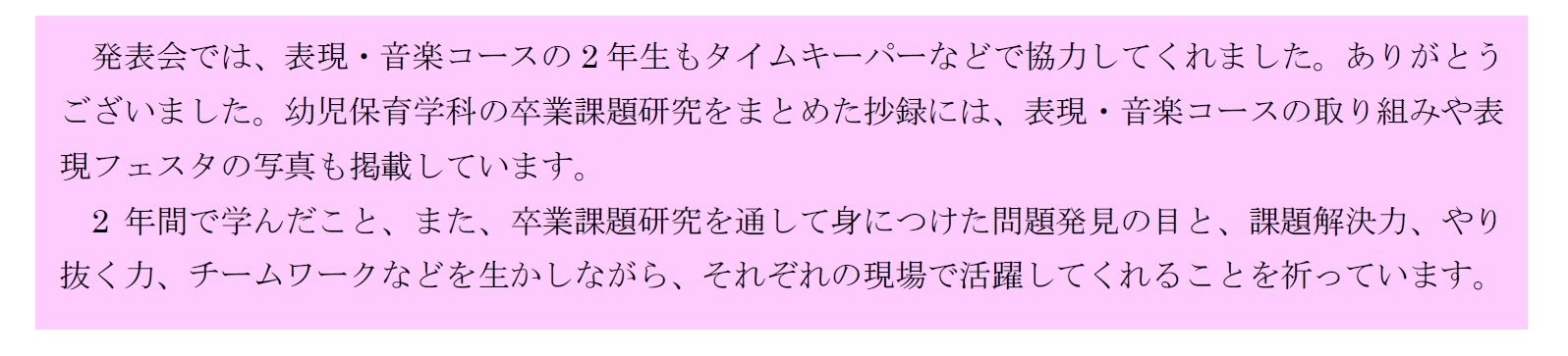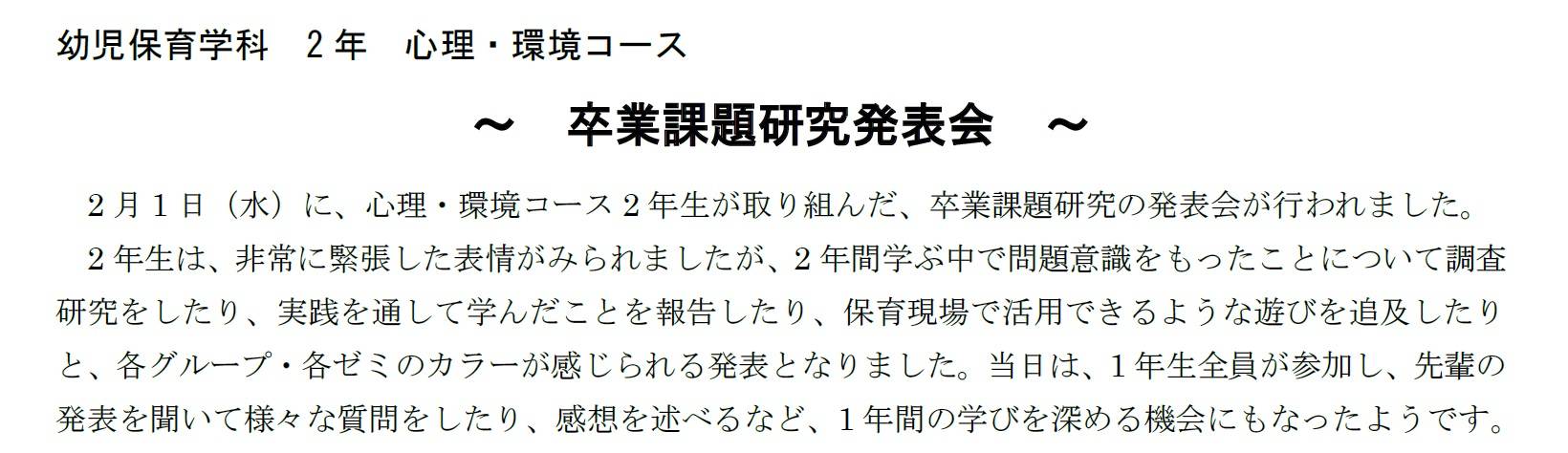 幼児保育学科 2年 心理・環境コース ~卒業課題研究発表会~