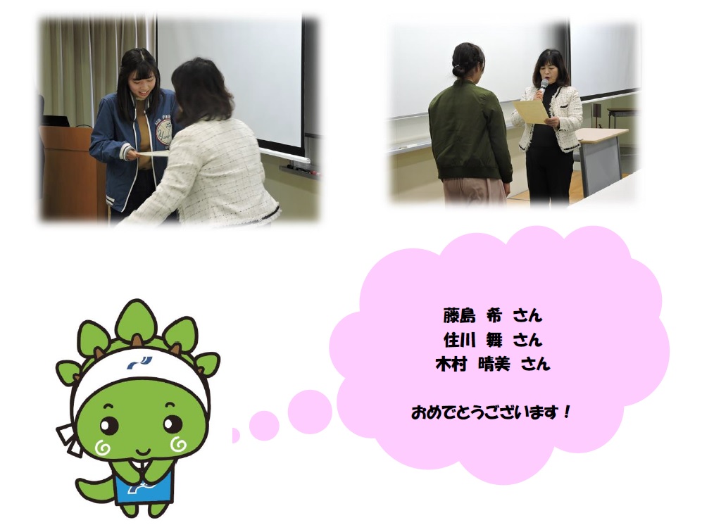 4月3日(月)、平成29年度前期オリエンテーションにおいて、1年次の成績優良者の表彰式が行われました。1年次の成績優良者3名は、非常に驚いた様子でしたが、これが刺激となり、さらに頑張ってくれることでしょう。今後も、互いに切磋琢磨し、仲間同士励ましあいながら頑張ってほしいと思います。