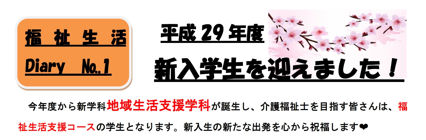 〈福祉生活Diary No.1〉平成29年度 新入学生を迎えました!