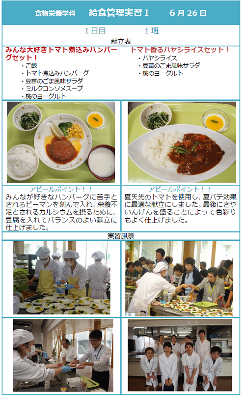 給食管理実習Ⅰ-2017 1日目 6月26日(月)