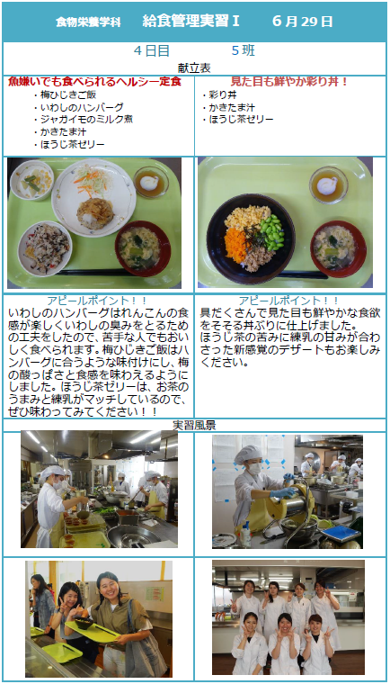 給食管理実習Ⅰ-2017 4日目 6月29日(木)