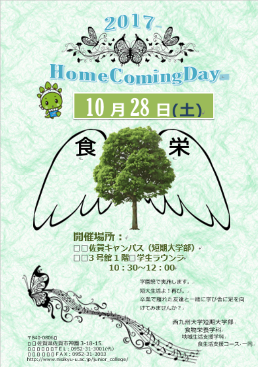 HomeComingDay2017のご案内 -H28年度卒業生へ-