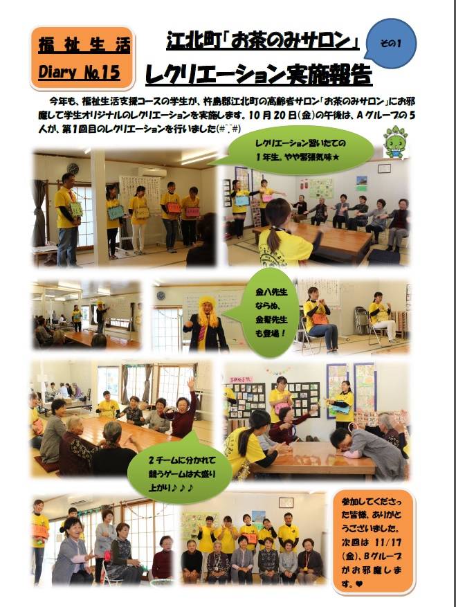 〈福祉生活Diary No.15〉江北町「お茶のみサロン」レクリエーション実施報告! その1