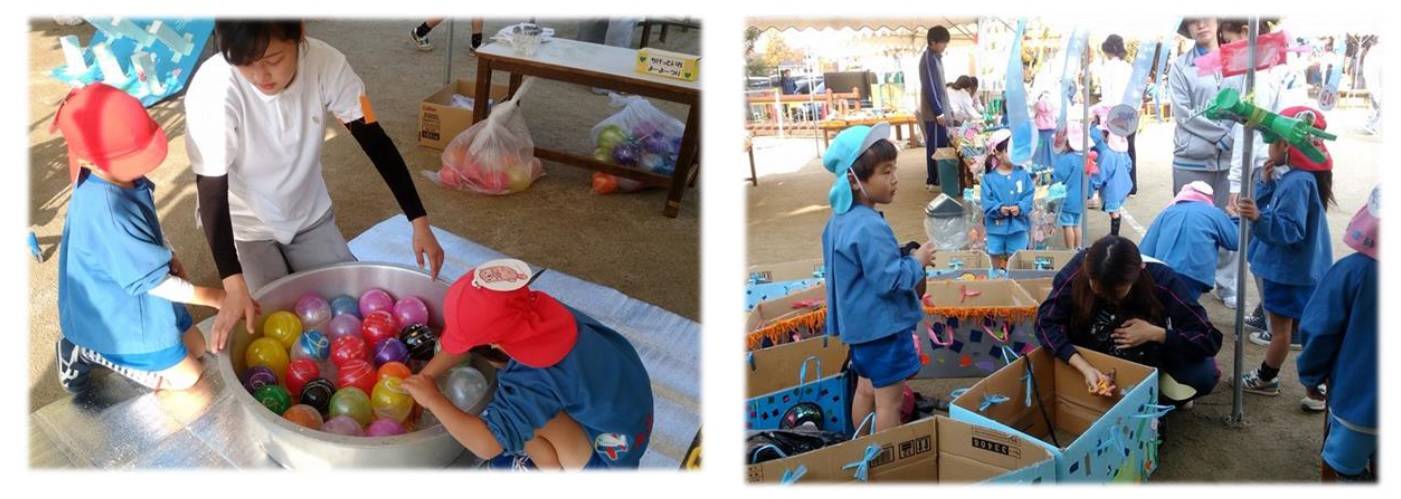 学生たちは、事前準備から当日の子どもたちの販売や買い物の援助まで、おまつり広場の一連の過程にかかわりました。今回の経験を通して、学生たちは園行事の運営に必要な役割やその内容、役割遂行能力や責任感の大切さを改めて感じたようでした。