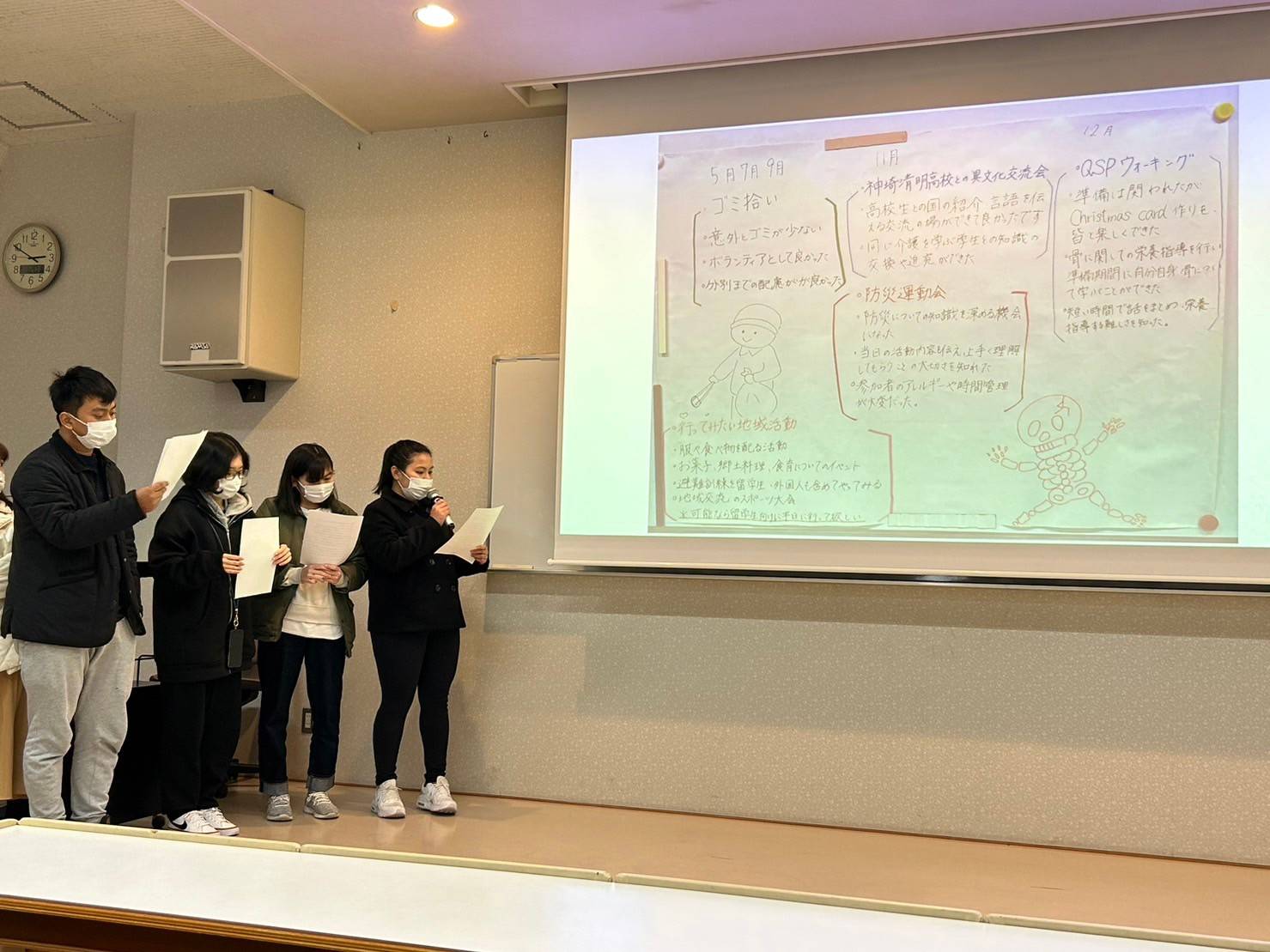 防災運動会や高校生との交流、国際交流、QSP健康ウォークなどに参加したり、いろんな立場の方と話し合うことで様々な気づきがあったようです(^^♪