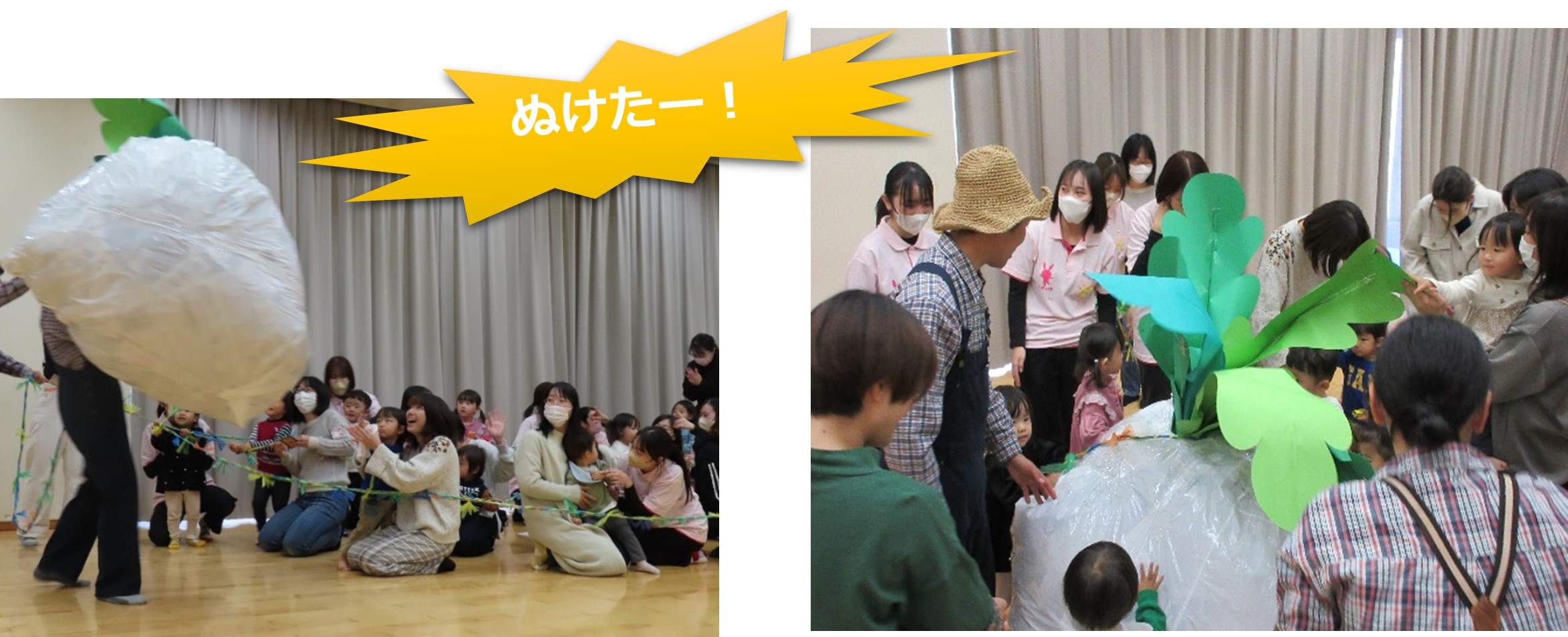 「そしたら、『おおきな かぶ』ができるんじゃない?」と、今回は蕪をテーマにした遊びになりました。