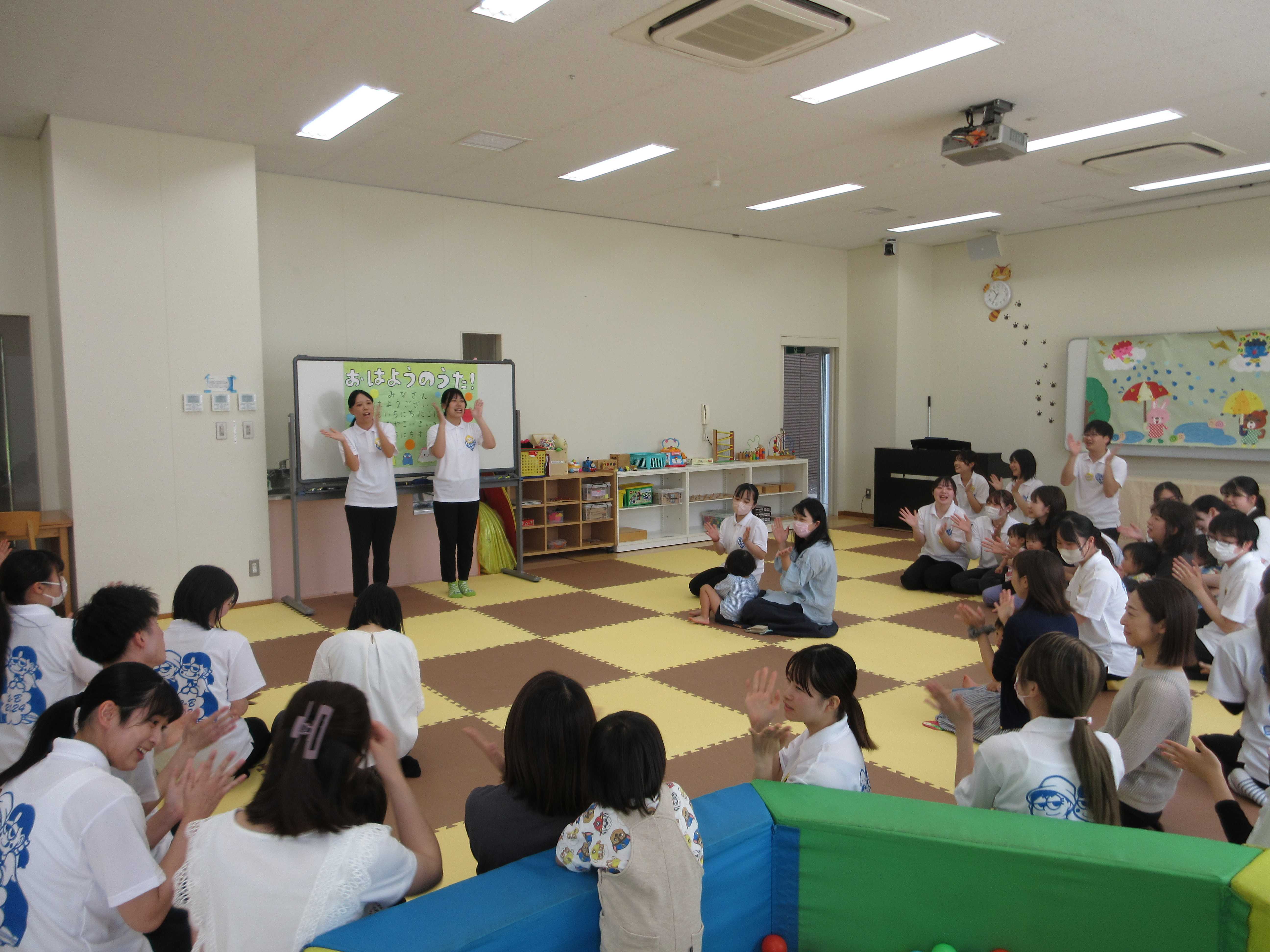最初はみんなで手遊びをしました。「はじまるよ♪はじまるよ♪」