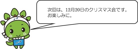 次回11月23日の「ぽっぽ」は「249わくわくフェスタ」への参加となります。自由参加となります。ぜひご家族でいらしてください。皆様とお会いするのは、12月20日のクリスマス会となります。サークル(ウールアンジュ)のメンバーが色々と考えてくれているようです。お楽しみに。